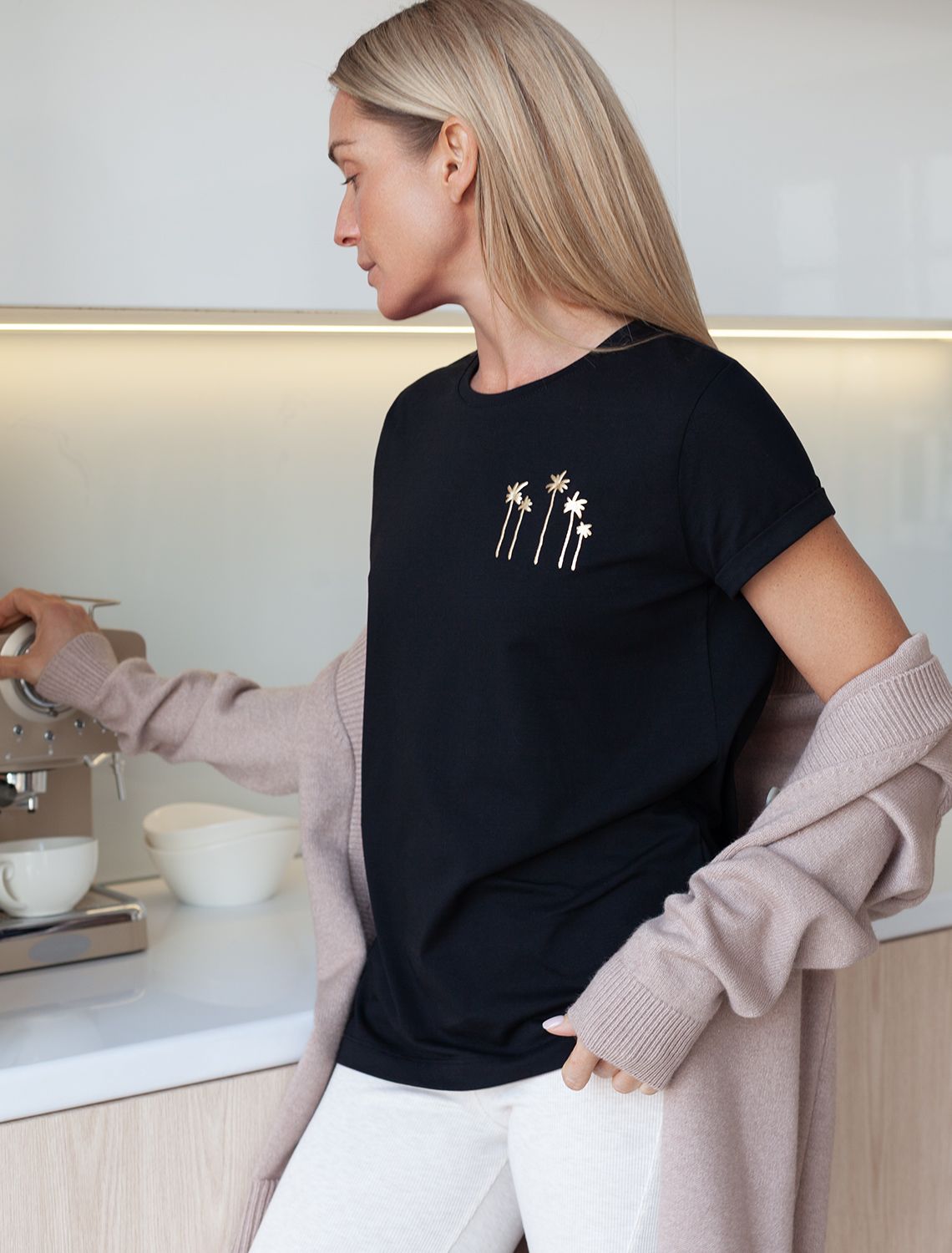 Футболка из премиального хлопка с авторским принтом D49.097 черный_пальмы