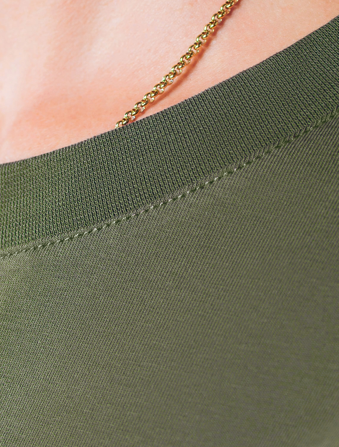 Футболка выполнена из премиального хлопка. Базовая модель, которая хорошо будет сочетаться в гардеробе с любым низом и любым дополнительным верхом вне зависимости сезона. Эластан в составе способствует формоустойчивости и меньшей сминаемости. Изделие украшено логотипом бренда. темно-оливковый