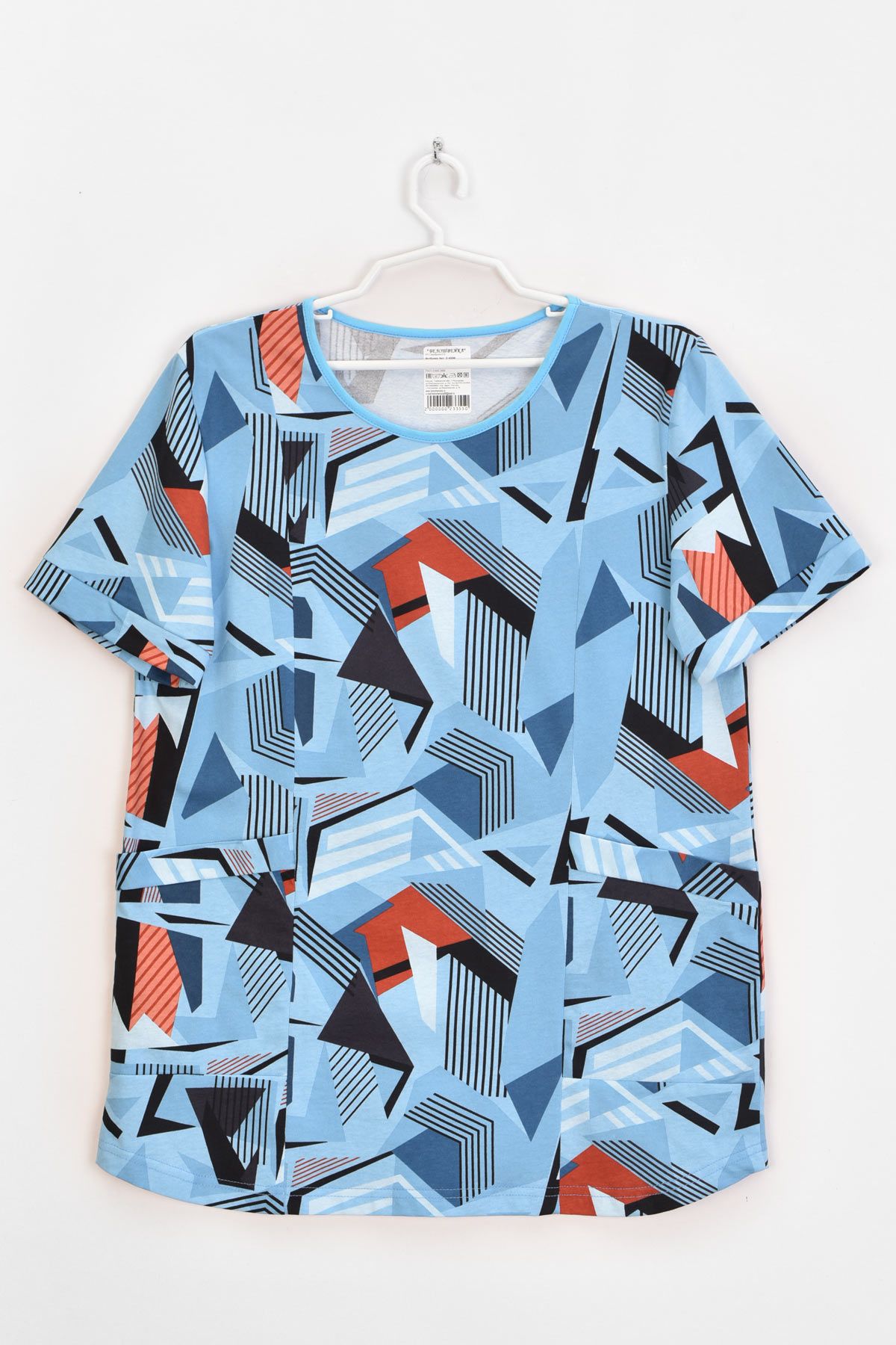 Ткань: Кулирка (Хлопок 100%) ЛЮБОЙ,Л 400Ф голубой_цветные абстракции,Л 400Ф голубые квадратики