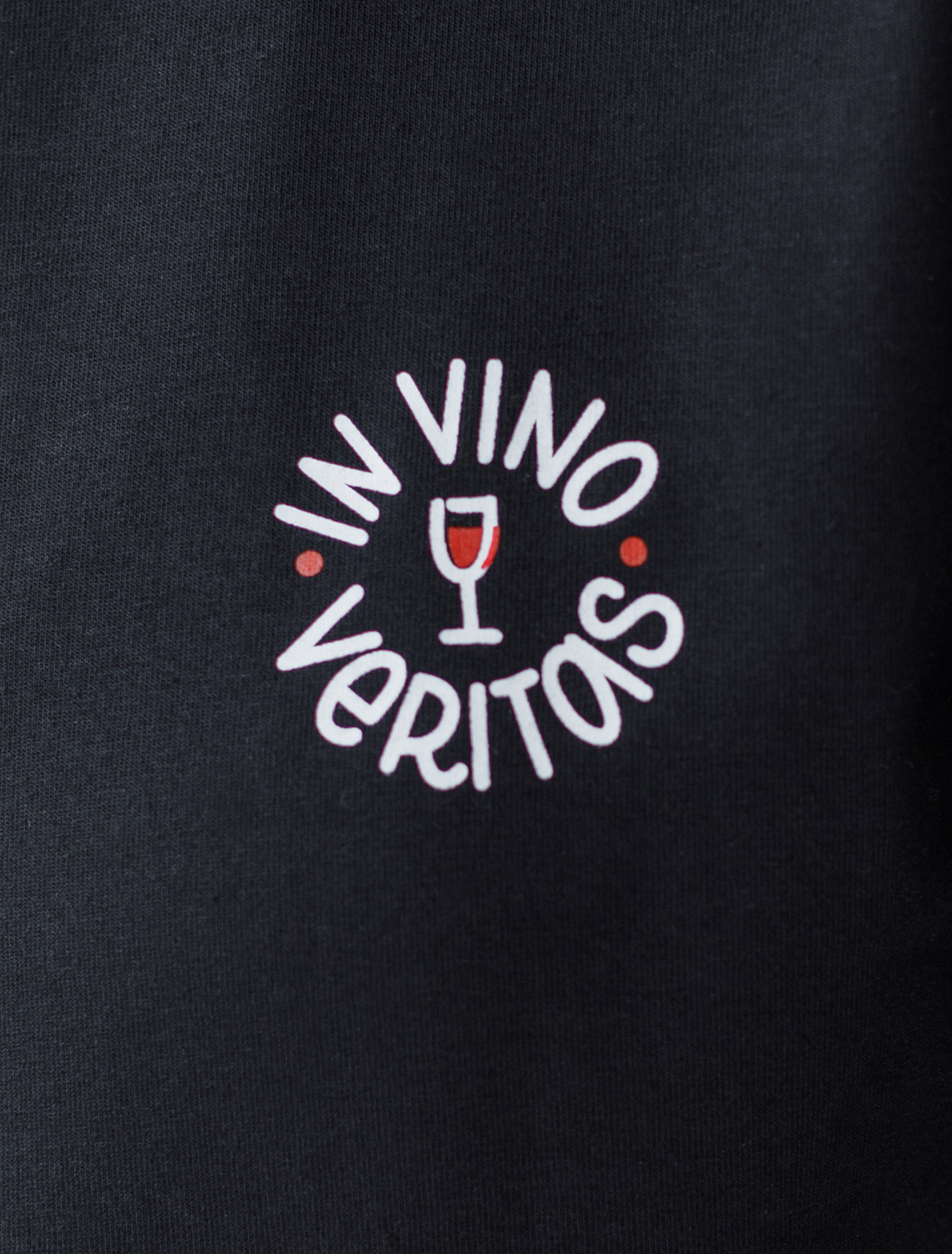 Особое внимание привлекает стильный принт в виде бокала с минималистичной надписью. Перевод надписи: In vino veritas - Приходит вино - уходит истина. Принт выполнен красками с устойчивым покрытием, который добавляет изделию оригинальности и позволяет выразить индивидуальность.