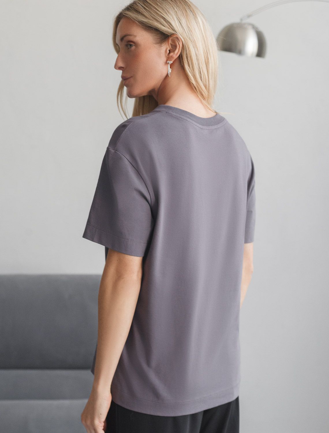 Футболка темно-серого цвета изготовлена из премиального хлопка с эластаном, она обеспечивает невероятное ощущение уюта и легкости. Натуральный материал сохраняет форму и цвет после множества стирок, обеспечивая долговечность изделия, а его высокая воздухопроницаемость создает ощущение свежести даже в течение долгого дня.