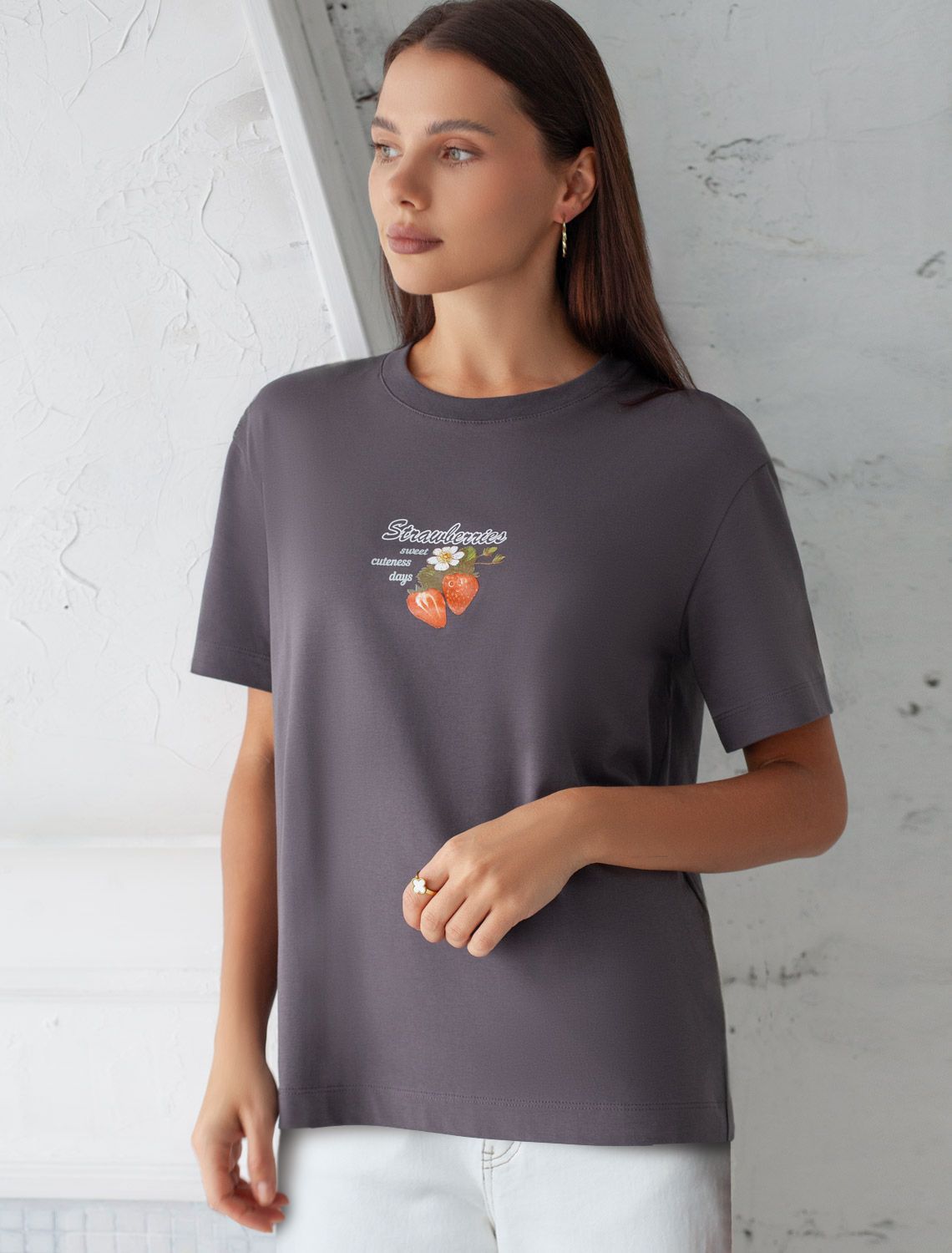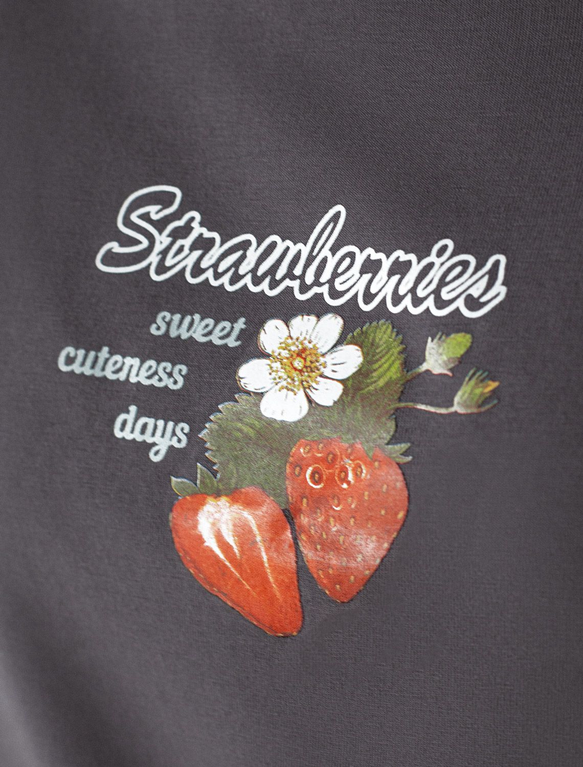 Особое внимание привлекает стильный принт в виде клубники с минималистичной надписью. Перевод надписи: Strawberries sweet summer days - Клубничные сладкие летние дни. Принт выполненны красками с устойчивым покрытием, который добавляет изделию оригинальности и позволяет выразить индивидуальность.