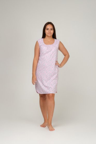 Оптовая продажа. Сорочка женская на широких бретелях, сборка по линии горловины, фигурный низ изделия, принт в ассорименте.