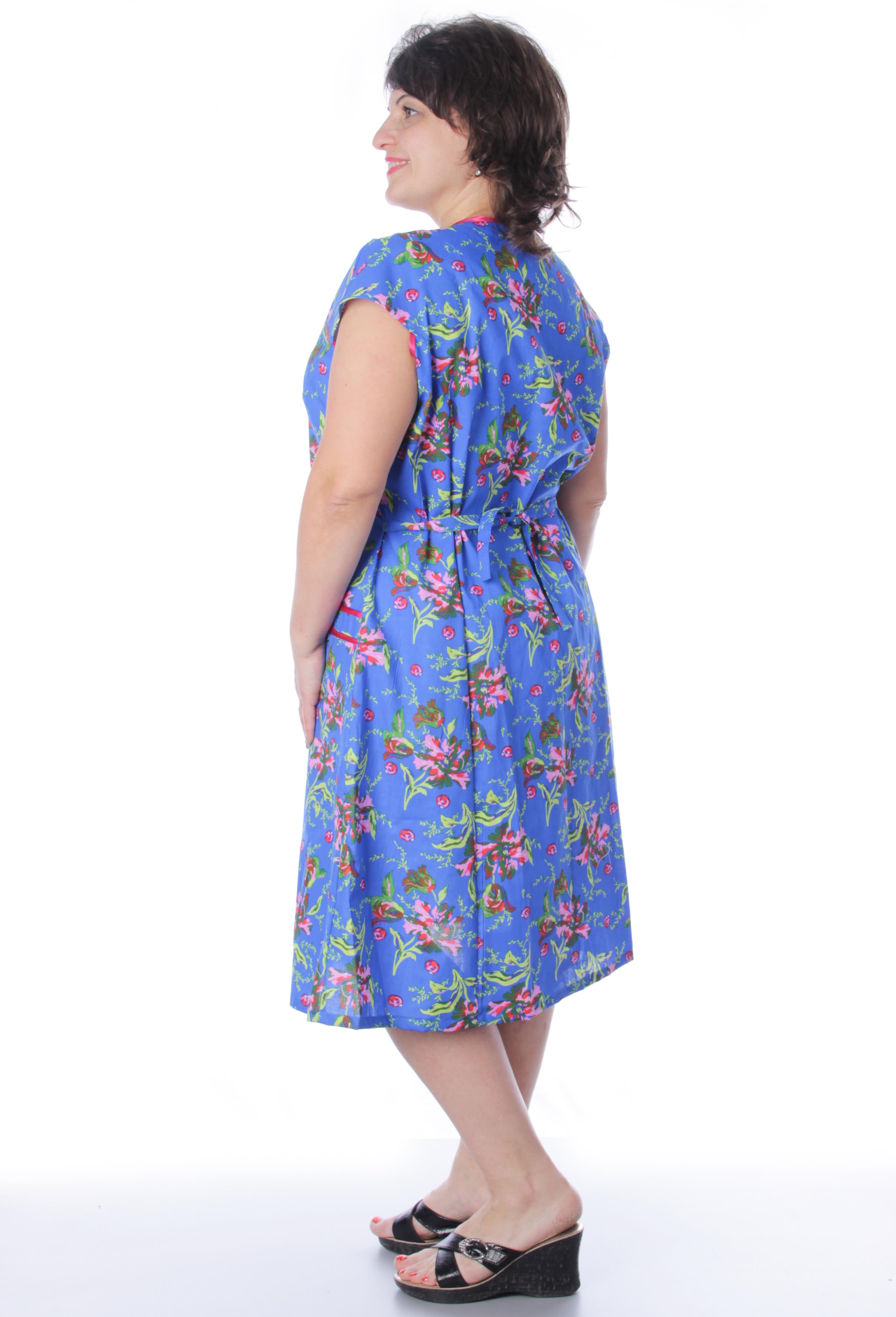 Женский халат на молнии из высококачественной бязи с карманами. Модель "годе", сзади регулируется пояском.