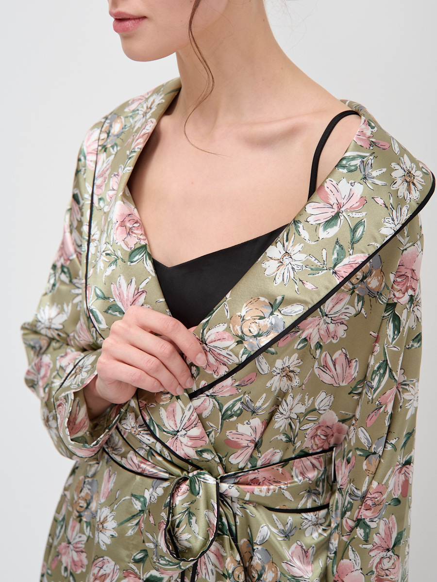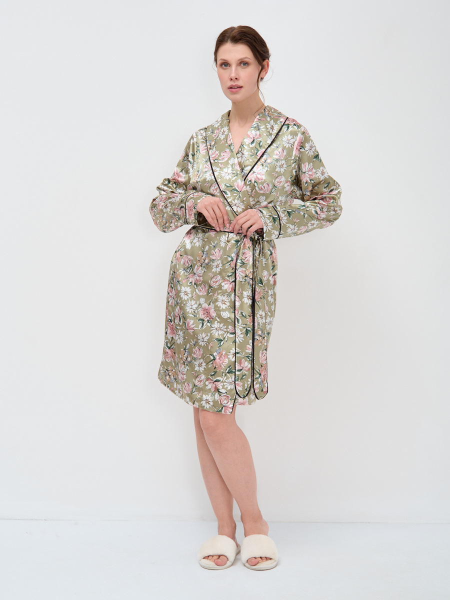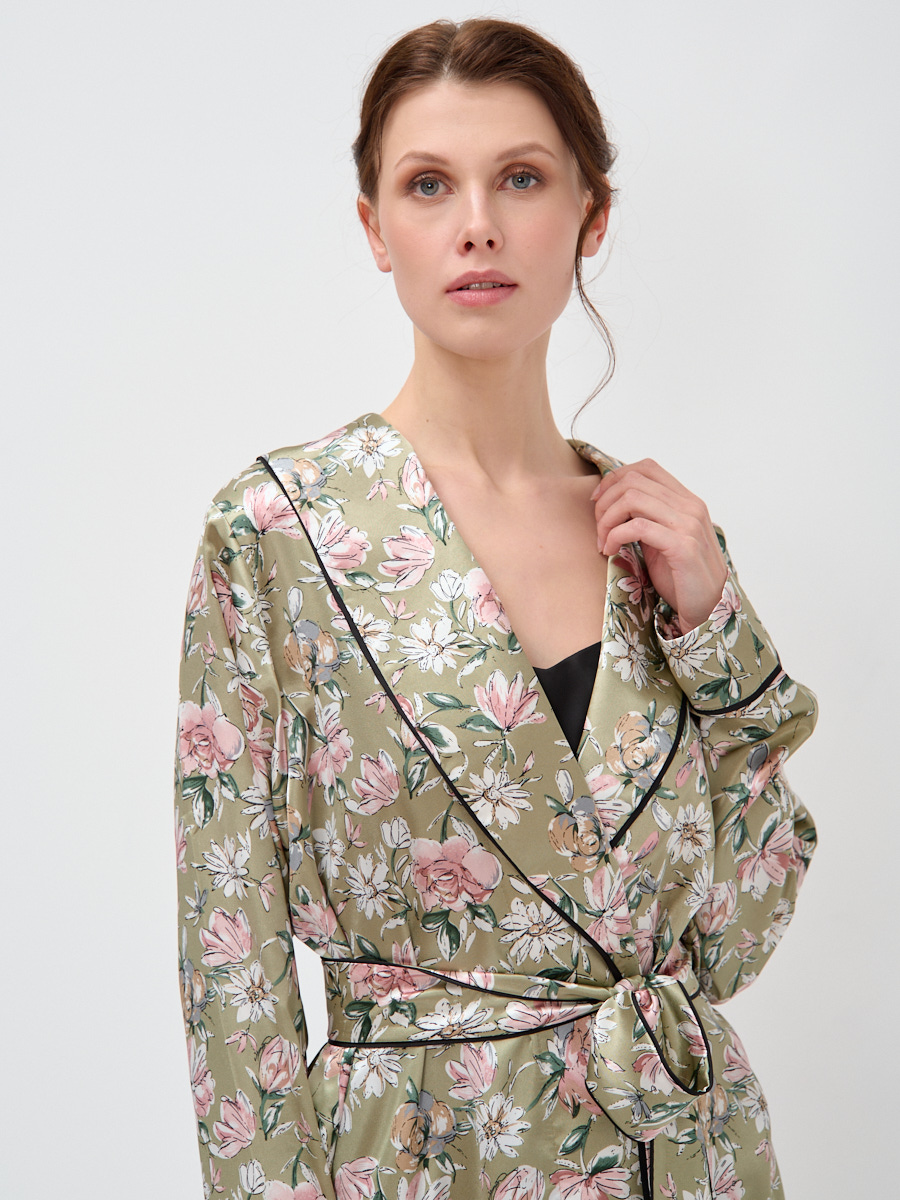 Женский халат на запах, из ткани Армани-шелк, позволит выглядеть привлекательно и эффектно даже дома. Шалевый воротник, втачной длинный рукав и съёмный пояс из основной ткани, украшены декоративным контрастным кантом. Ткань отличается мягкой текстурой и необычайной легкостью, граничащей с невесомостью. Она нежно струится по телу, не стесняя движений, дарит ощущение комфорта и способствует расслаблению после насыщенного трудового дня. Рост модели 175 см. Изделие на модели 42 размера. Длина изделия по спинке 95 см. Машинная стирка при 30 градусах.