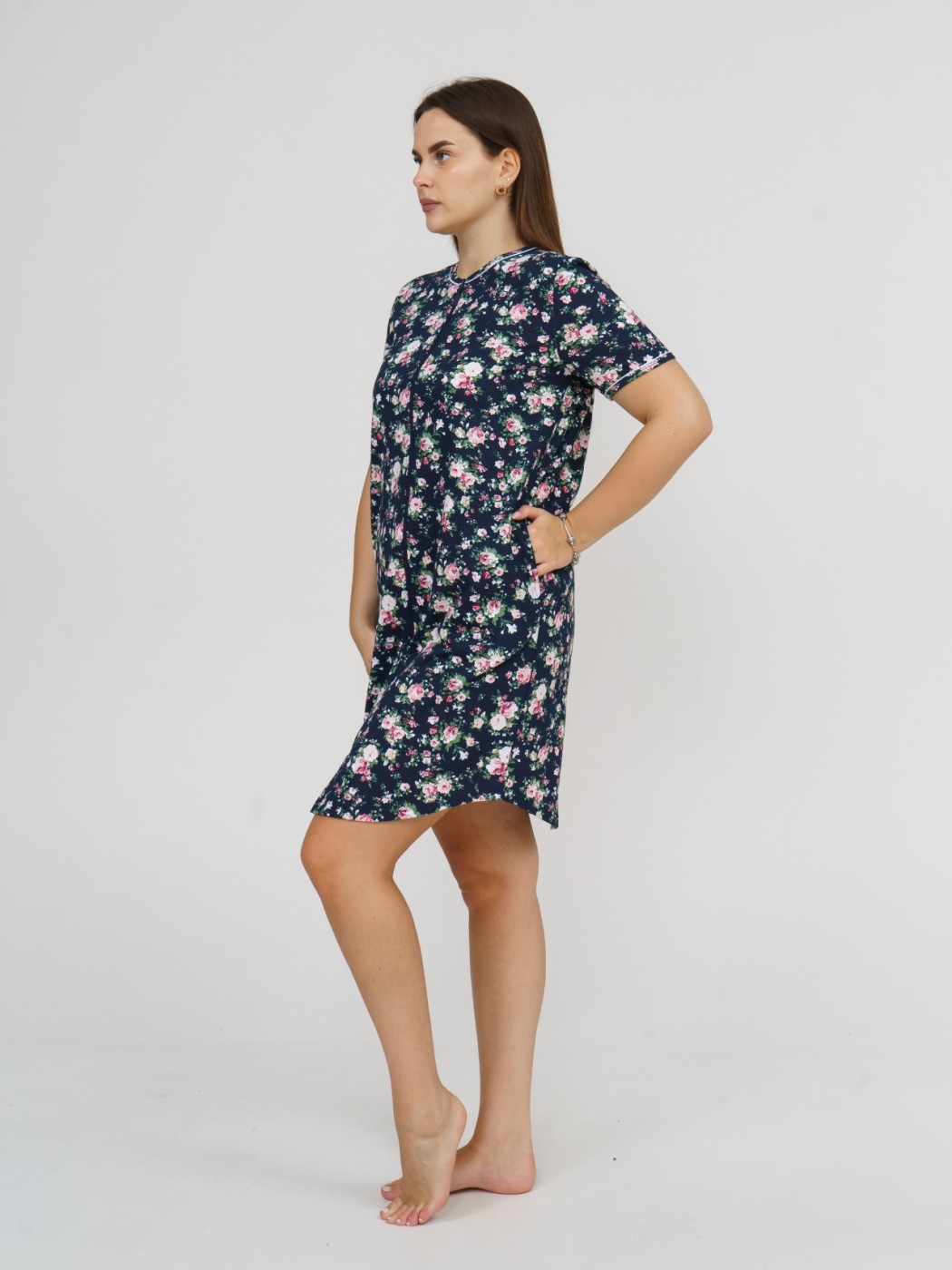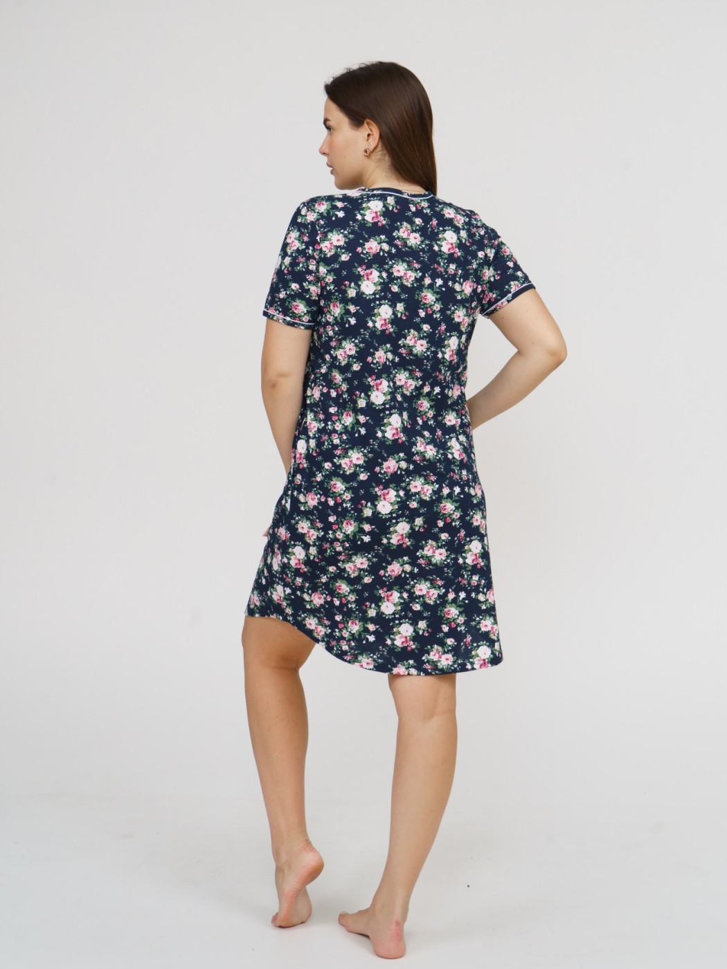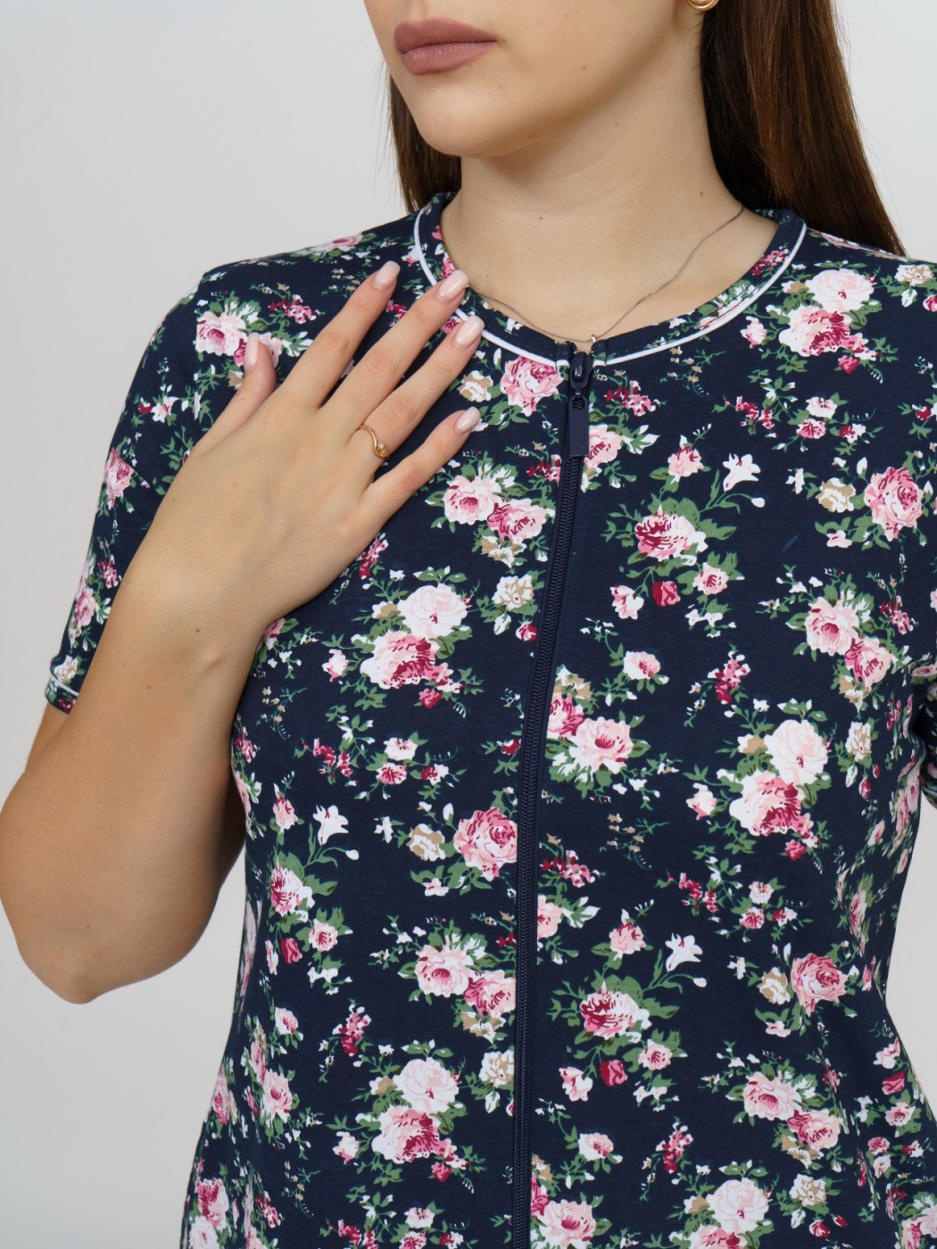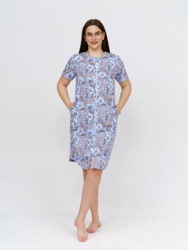Халат Лотос набивка т.синий/цветы