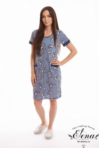 Женский халат на молнии из х/б полотна с набивкой. По бокам расположены карманы.