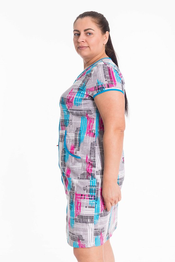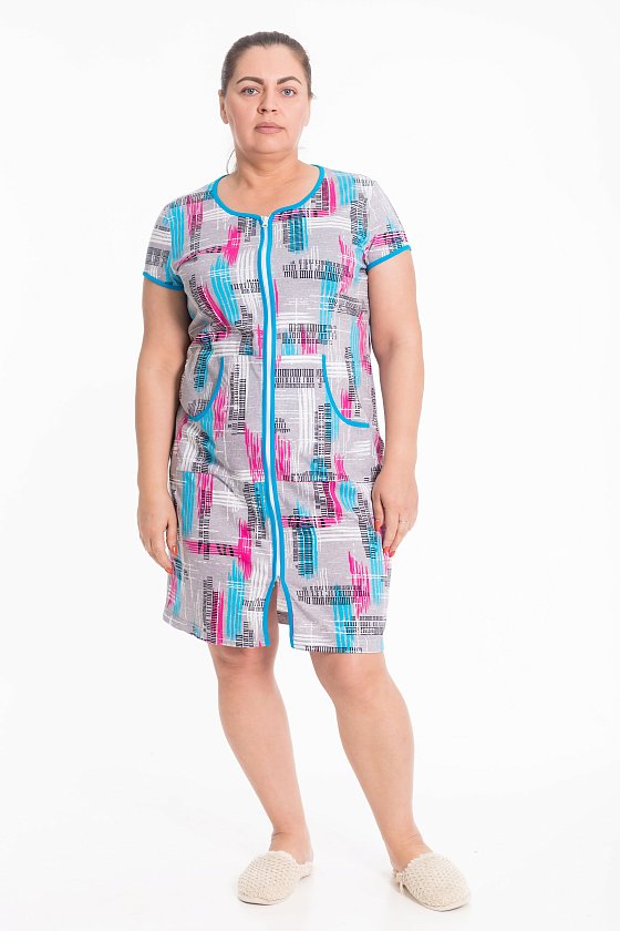 Женский халат — отличный выбор для домашнего отдыха. Он изготовлен из мягкого и комфортного хлопкового полотна с набивным рисунком, что придаёт изделию стильный вид. Халат застёгивается на молнию спереди, что обеспечивает удобство при надевании. Горловина, низ рукавов, борта и вход в карманы обработаны контрастной бейкой, что добавляет изделию аккуратности и завершает образ. Такой халат идеально подойдёт для повседневной носки дома.