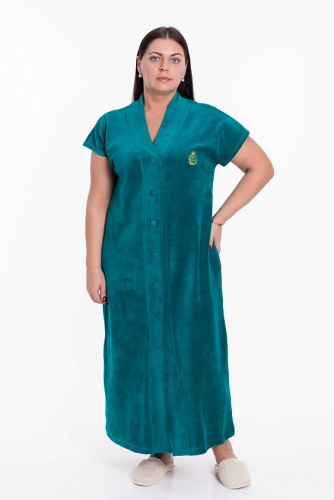 Халат выполнен из х/б полотна. Полочки запахиваются и завязываются на пояс.