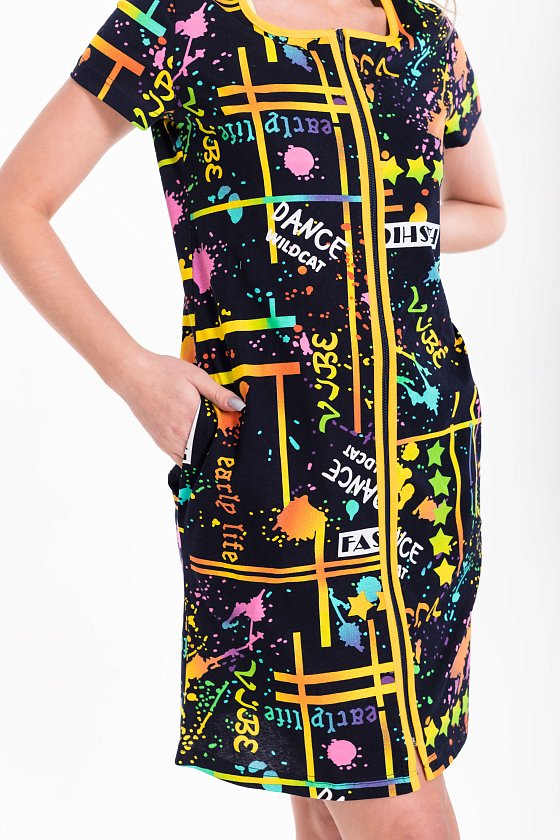 Женский халат с застёжкой на молнию выполнен из кулирки. По бокам размещены карманы.