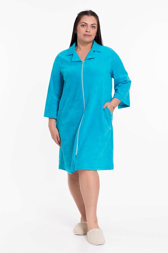 Женский халат — идеальный выбор для домашнего отдыха. Он выполнен из мягкого и приятного на ощупь однотонного велюра бирюзового цвета, который обеспечивает комфорт и тепло.