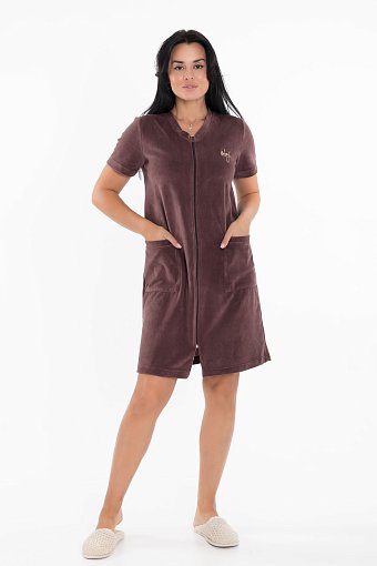 На левой полочке халата расположена вышивка в тон основного цвета, которая добавляет изюминку в дизайн. Накладные карманы придают модели функциональность.