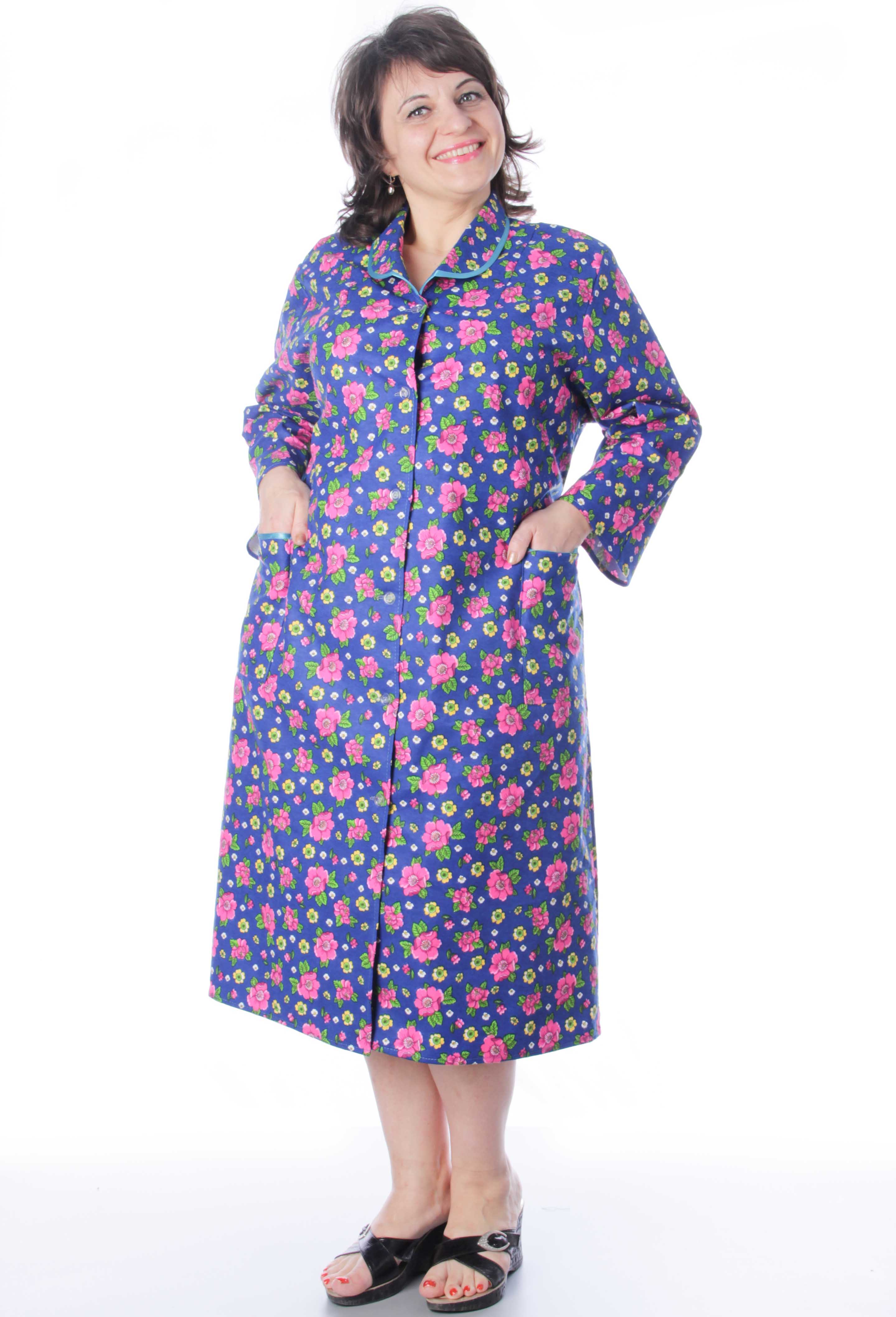 Халат на пуговицах 5xl, фланель (цвета в ассортименте)