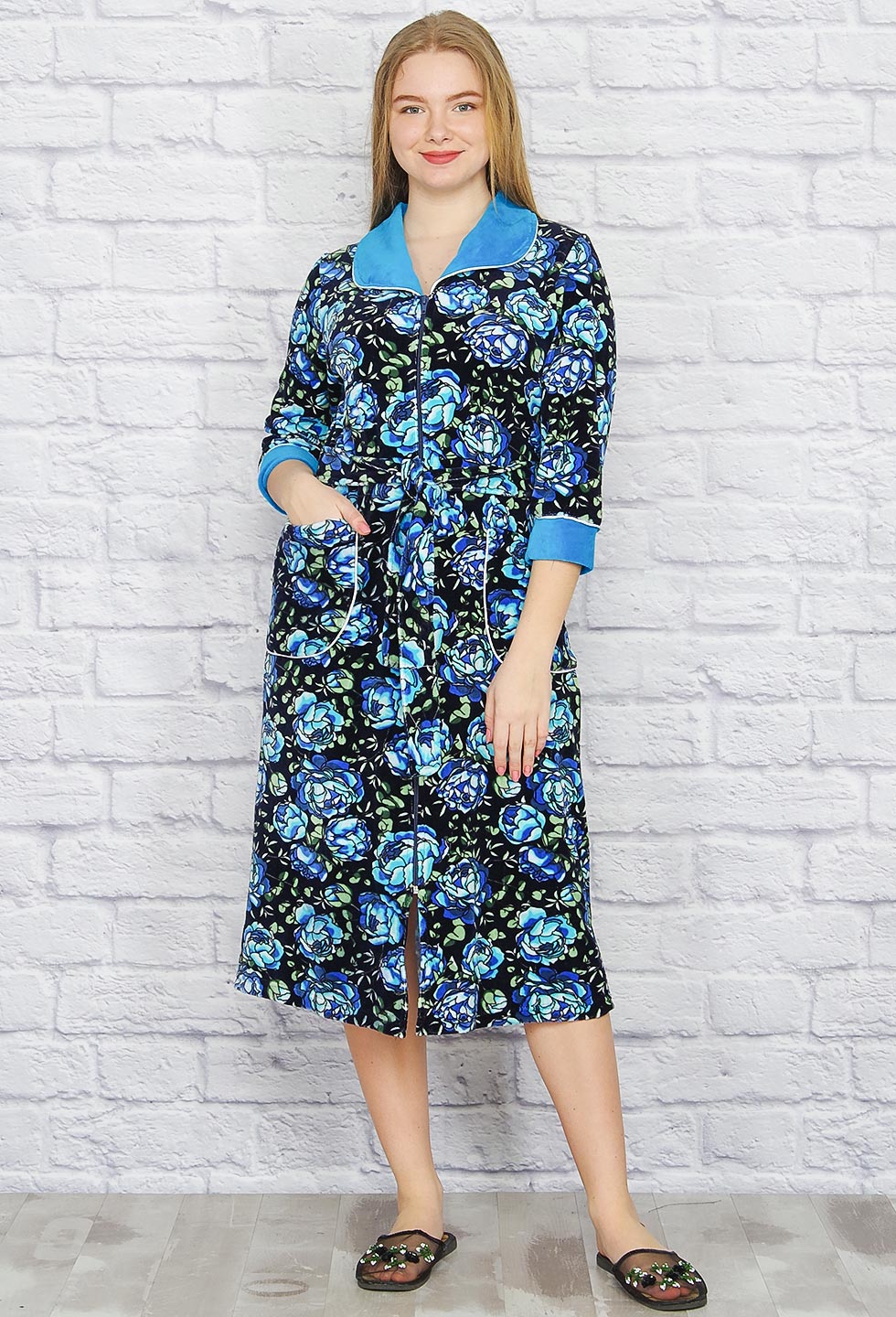 Мягкий уютный и тёплый халатик на молнии. Модель с воротником, рукав 3/4, удобные карманы, комфортная длина, в комплекте пояс.