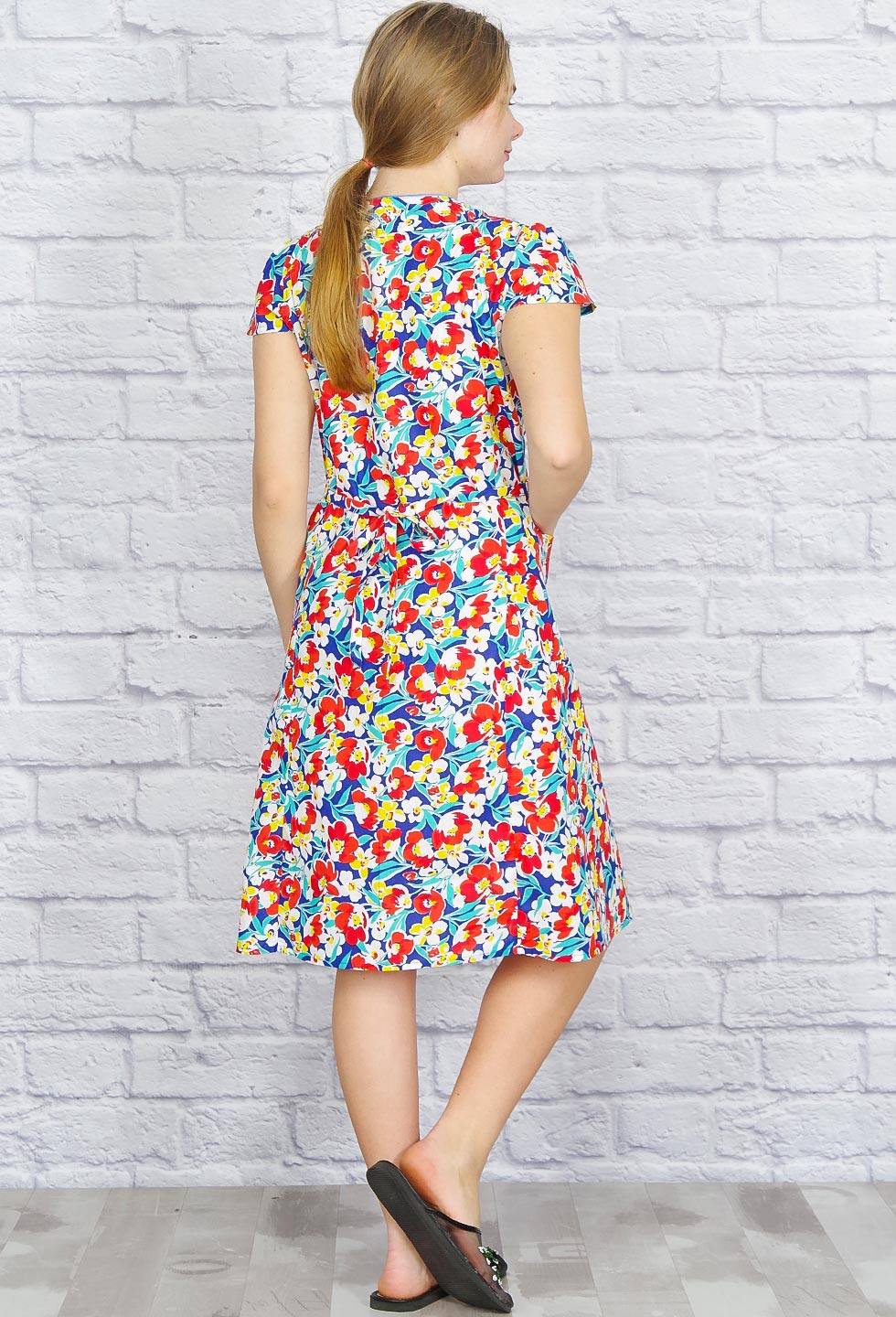 Свободный халатик на пуговицах, с коротким рукавом, с удобными накладными карманами. Линия талии регулируется тонким пояском на спинке.
