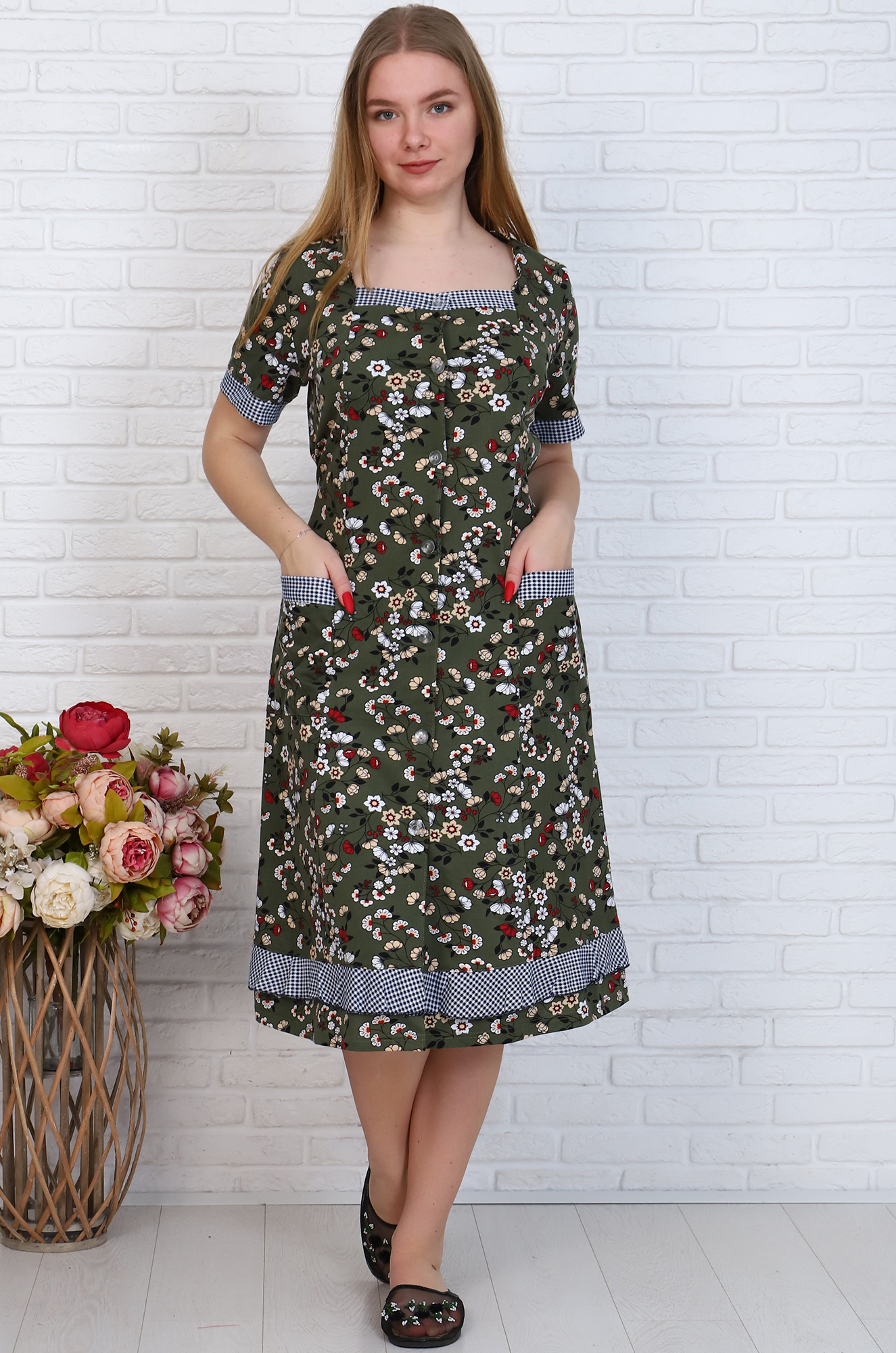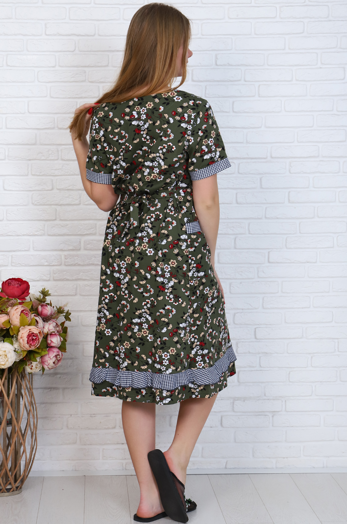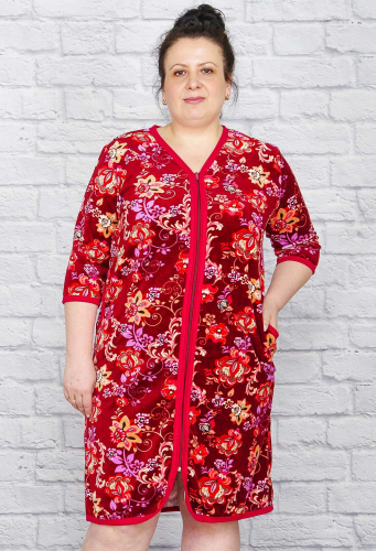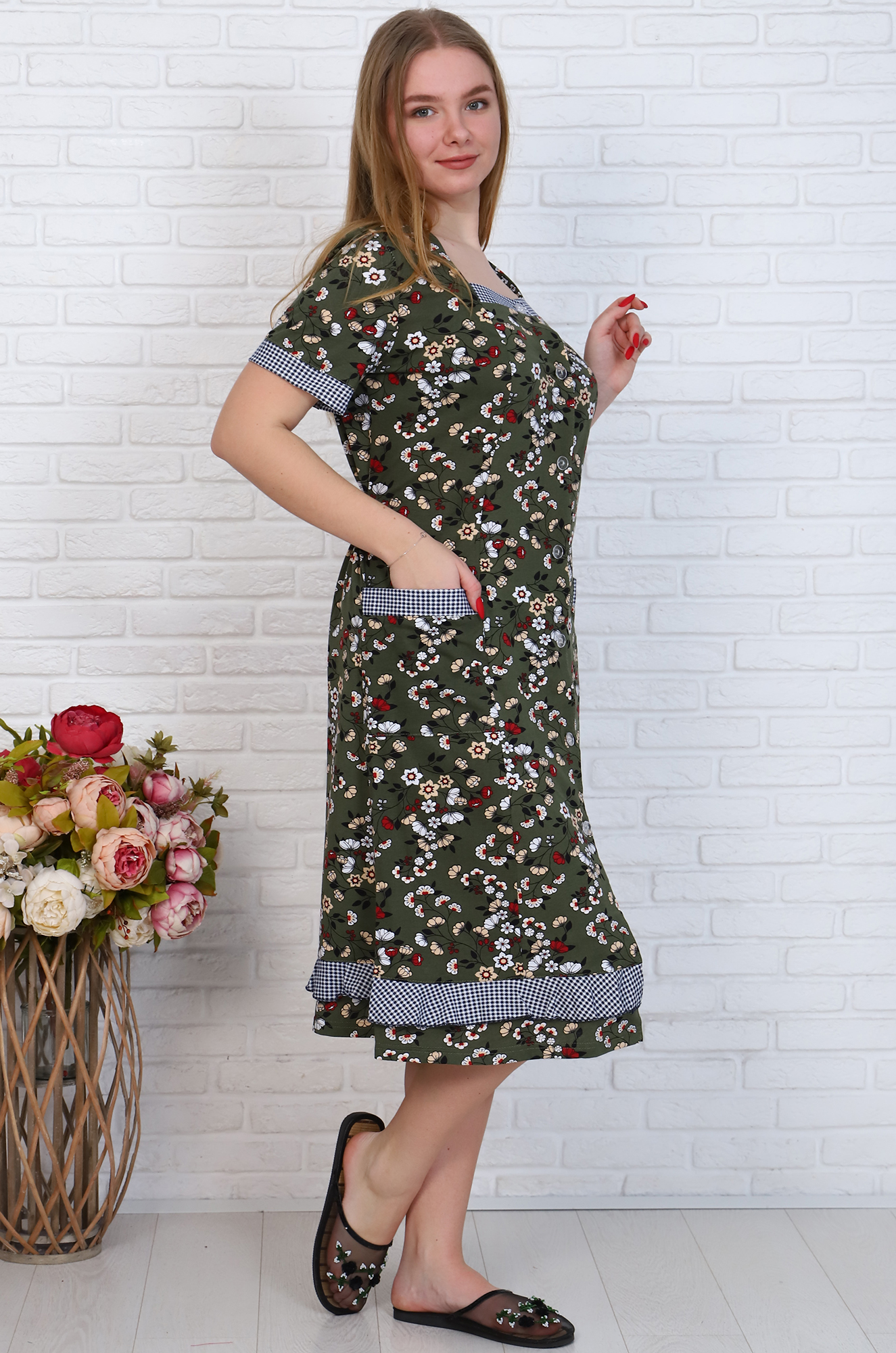 Удобный хлопковый халат на пуговицах. Модель комфортной длины, с накладными карманами, сзади поясок.