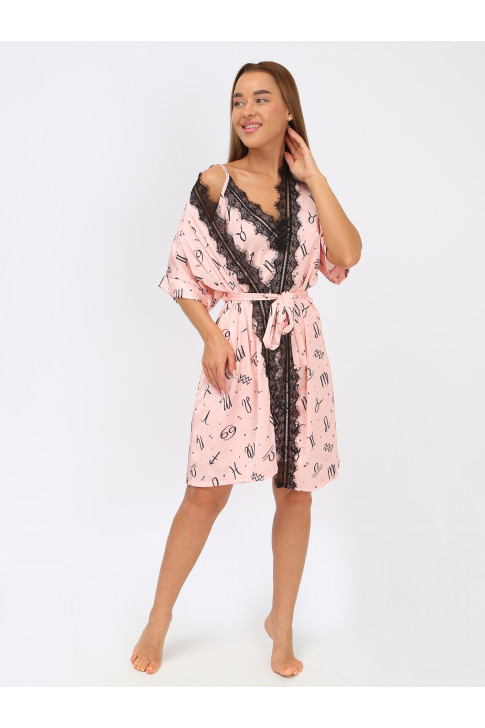 Легкий запашной халат из искусственного шелка с кружевной отделкой.