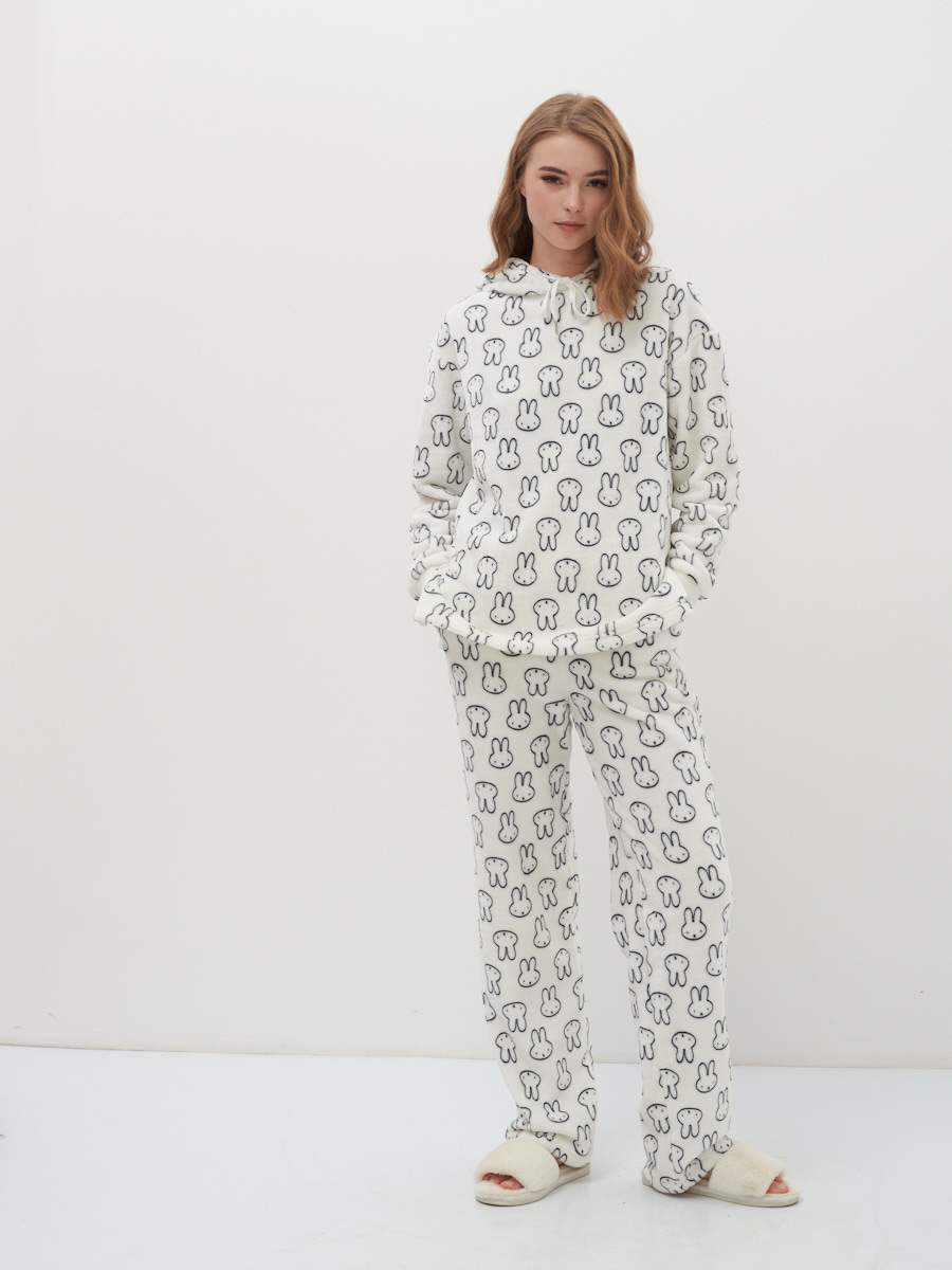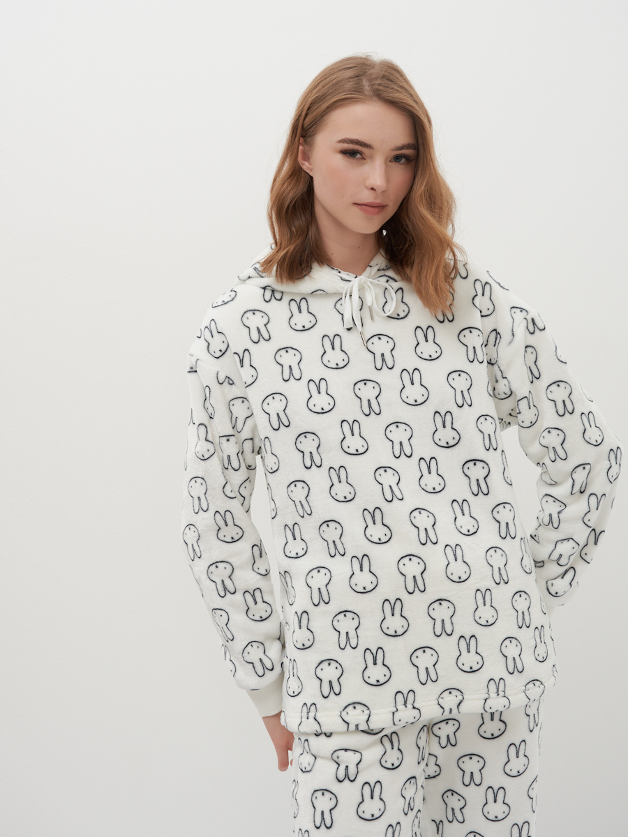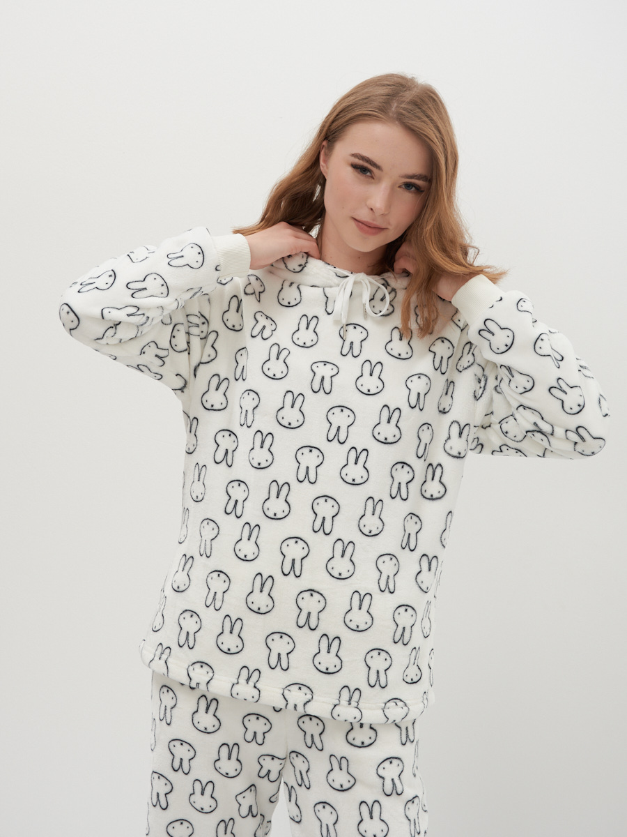 Представляем уникальное худи из плюша с оригинальным принтом, разработанное и произведенное ТМ TANTINO. Это изделие станет хитом в ассортименте вашего бутика или шоурума, благодаря сочетанию комфорта, стиля и высокого качества.Наше худи выполнено из невероятно мягкого и приятного к телу плюшевого флиса, который обеспечивает максимальное тепло и уют. Модель оверсайз со спущенной линией плеча и длинными прямыми рукавами на резинке-кашкорсе гарантирует идеальную посадку и свободу движений. Глубокий капюшон со шнурком добавляет функциональности и завершает образ. Для дополнительного комфорта предусмотрены разрезы по боковым швам, что придает изделию современный вид и удобство в носке.Особое внимание привлекает эксклюзивный принт с зайчиками, который делает это худи не просто базовой вещью, а ярким акцентом гардероба. Оно идеально сочетается с брюками или шортами из аналогичной ткани, создавая полноценный костюм, который подойдет как для домашнего отдыха, так и для прогулок или путешествий. Эта модель олицетворяет универсальность и стиль, обеспечивая высокую оборачиваемость в вашем магазине.Преимущества для оптовых покупателей:Высокое качество: Собственное производство полного цикла TANTINO гарантирует безупречность лекал, пошива и долговечность ткани.Актуальный дизайн: Модный оверсайз крой и уникальный принт привлекают широкую аудиторию.Универсальность: Подходит для дома, отдыха и повседневной носки, легко комбинируется с другими элементами гардероба.Привлекательность: Худи будет востребовано среди ваших покупательниц, ценящих комфорт и оригинальность.Рекомендации по уходу: Машинная стирка при 30 градусах.Не упустите возможность пополнить ваш ассортимент продукцией, которая выделит вас на рынке и принесет стабильный доход.
