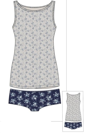 Оптовая продажа. Комплект: Майка на широких бретелях из принтованного полотна, трусики-шорты.