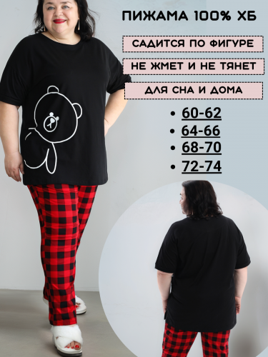 Пижама женская, комфортный крой и 100% хлопок. Цвет: ассорти (Внимание! Данный товар по цвету не подбирается, возможные варианты расцветок представлены на фото). Пижама состоит из бридж и футболки с короткими рукавами.