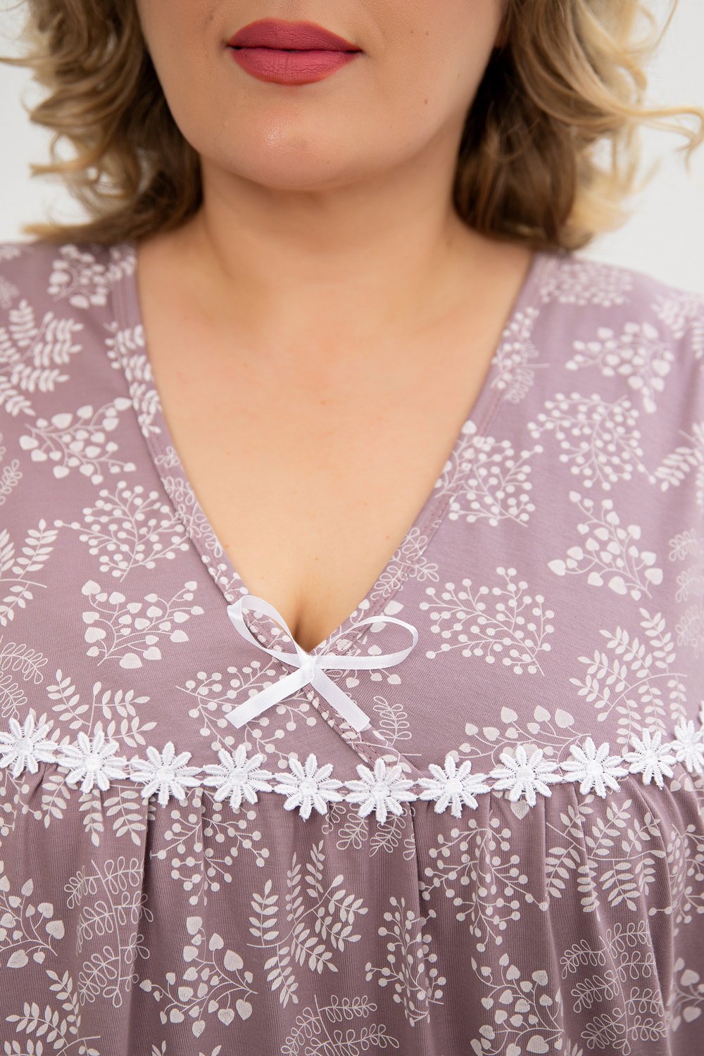 Эта красивая ночная сорочка создана для женщин, ценящих комфорт и стиль. Изготовленная из мягкого хлопка, она идеально подходит для сна и домашнего отдыха. Благодаря качественному ивановскому трикотажу изделие обеспечивает уют и приятные тактильные ощущения. Свободный крой не сковывает движений, что делает модель удобной для повседневного использования. Сорочка подойдет для полных женщин и беременных, а также станет отличным выбором для кормящих мам благодаря функциональному дизайну. Она также отлично справится со своей ролью в роддоме, обеспечивая максимальное удобство в важные моменты жизни. Ткань дышащая и легкая, что гарантирует комфорт даже в жаркую погоду. Ночнушка дополнена нежным кружевом, которое придает ей элегантности и женственности. Длинная длина изделия создает ощущение уюта и защищенности во время сна. Этот вариант станет прекрасным подарком для бабушки или другой близкой женщины, ведь он сочетает практичность с эстетикой. Хлопковый материал отличается высокой износостойкостью и гипоаллергенными свойствами, делая сорочку безопасной даже для самой чувствительной кожи. Трикотажное полотно обеспечивает свободу движений, не стесняя фигуру. Удобный фасон особенно актуален для женщин больших размеров одежда садится по фигуре максимально комфортно и непринужденно. Эта домашняя хлопковая ночнушка создана с учетом всех особенностей женской фигуры: она универсальна и подходит для самых разных ситуаций. Комфортный крой гармонично сочетается с классическим дизайном простота линий дополняется утонченными элементами отделки. Если вы ищете свободную одежду для сна или приятного вечера дома, эта сорочка станет отличным выбором! Цвет: Иветта серый, сиреневый;Лаванда сиреневый;Ксения лиловый; Материал: кулирка;кулирка; Состав: Хлопок 100%.
