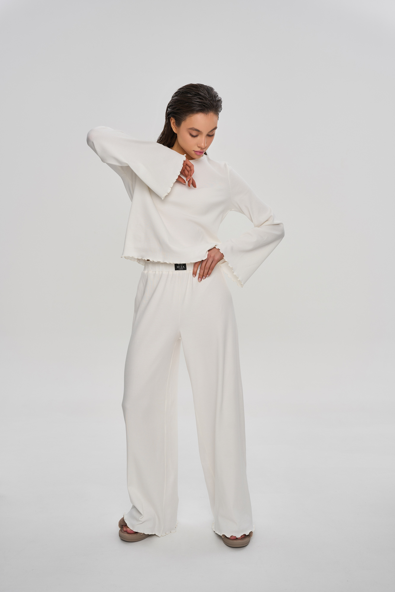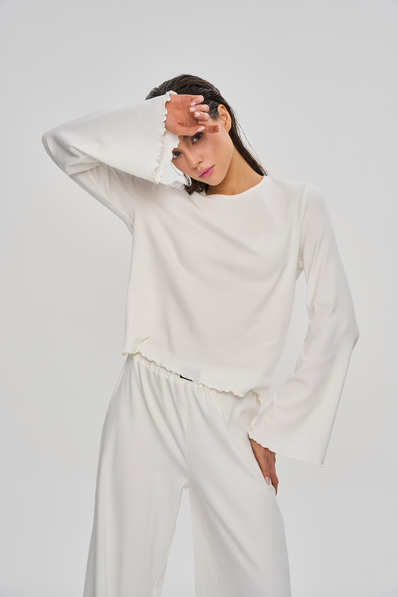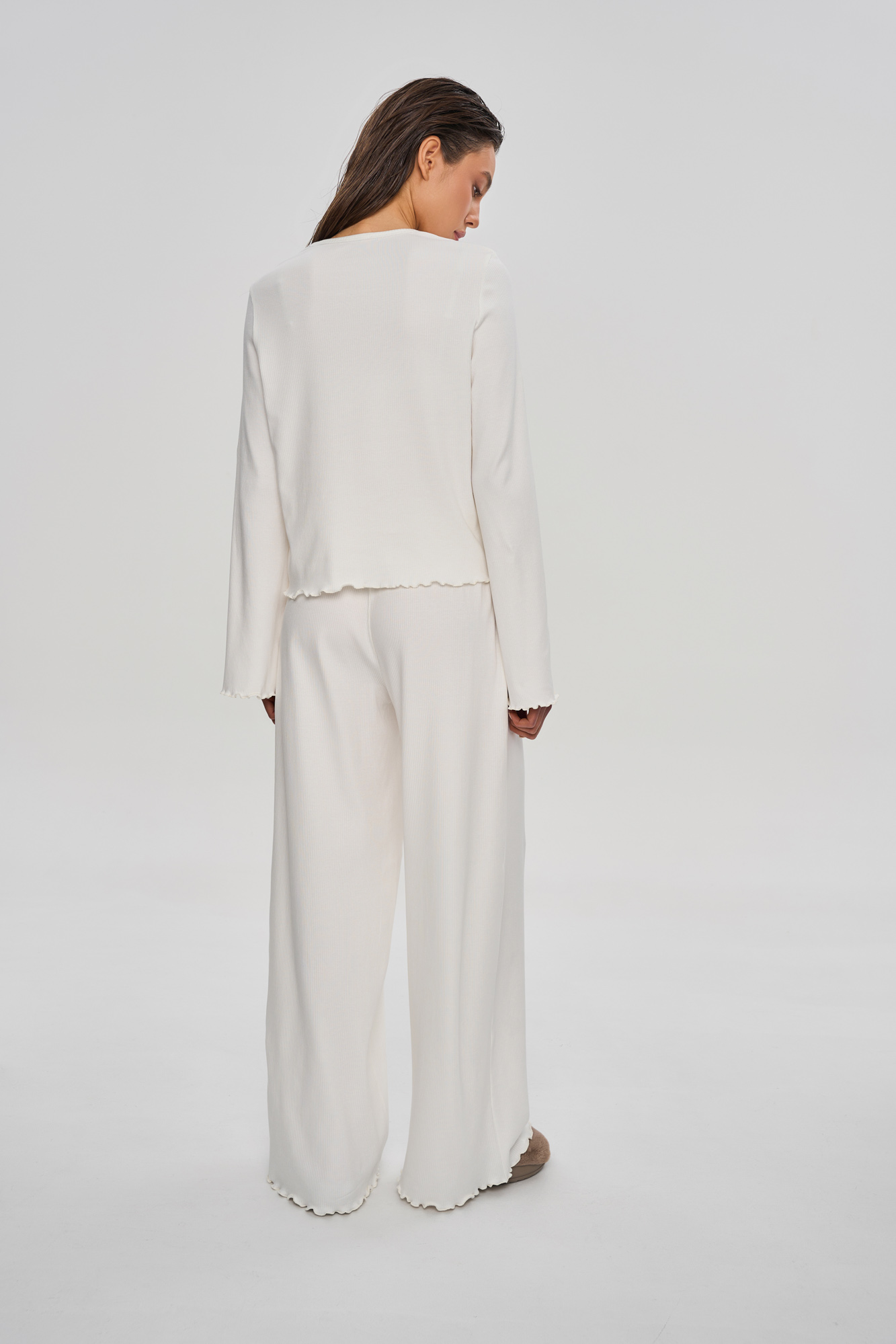 Комплект состоит из лонгслива свободного кроя и свободных брюк кроя "палаццо".