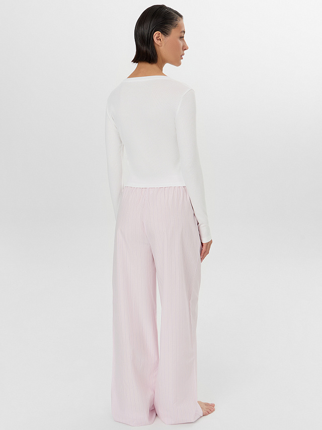 Пижама женская с брюками— это эталон комфорта и элегантности для вашего ночного отдыха. Комплект состоит из приталенного джемпера и свободных брюк, выполненных из натурального хлопка, который обеспечивает мягкость, воздухопроницаемость и заботу о чувствительной коже. Джемпер с изящным вырезом и длинными рукавами мягко подчеркивает силуэт, а брюки с эластичным поясом на резинке гарантируют свободу движений во время сна.