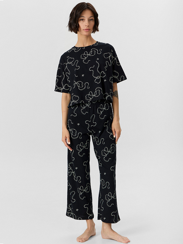 Очаровательная женская пижама с бриджами и укороченной футболкой — это идеальное сочетание комфорта, стиля и заботы о себе. Выполненная из высококачественного хлопка, она приятно облегает тело, не вызывает раздражения и подходит даже для самой нежной кожи. Мягкий, эластичный материал дарит ощущение легкости, а удобный крой и деликатные швы обеспечивают полную свободу движений. Эта пижама станет вашим любимым вариантом для сна, домашних дел или уютного отдыха. Яркий и стильный дизайн подчеркнёт вашу индивидуальность и создаст неповторимый образ, в котором вы будете выглядеть потрясающе даже в домашней обстановке. Благодаря широкому размерному и цветовому ряду каждая женщина найдёт свою идеальную модель. Это не просто одежда — это комфорт, уверенность и удовольствие каждый день. Рекомендуем!