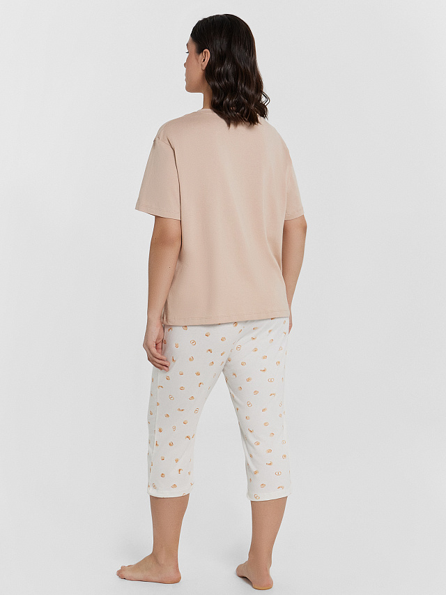 Стильная пижама женская с бриджами прямого кроя и джемпером с коротким рукавом изготовлена из высококачественного мягкого хлопка. Красивый насыщенный цвет и оригинальный принт делают модель интересной и привлекательной. Пижама с бриджами — отличный вариант женской одежды для сна, домашних дел, а также для отдыха дома. Мягкий, эластичный хлопковый материал гипоаллергенен, подойдет для нежной кожи. В линейке много интересных расцветок, широкий размерный ряд, есть актуальные модели plus-size пижам женских для девушек с пышными формами. Домашний комплект с бриджами от Mark Formelle приятно получить как подарок на праздники, так и просто без повода!