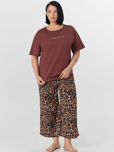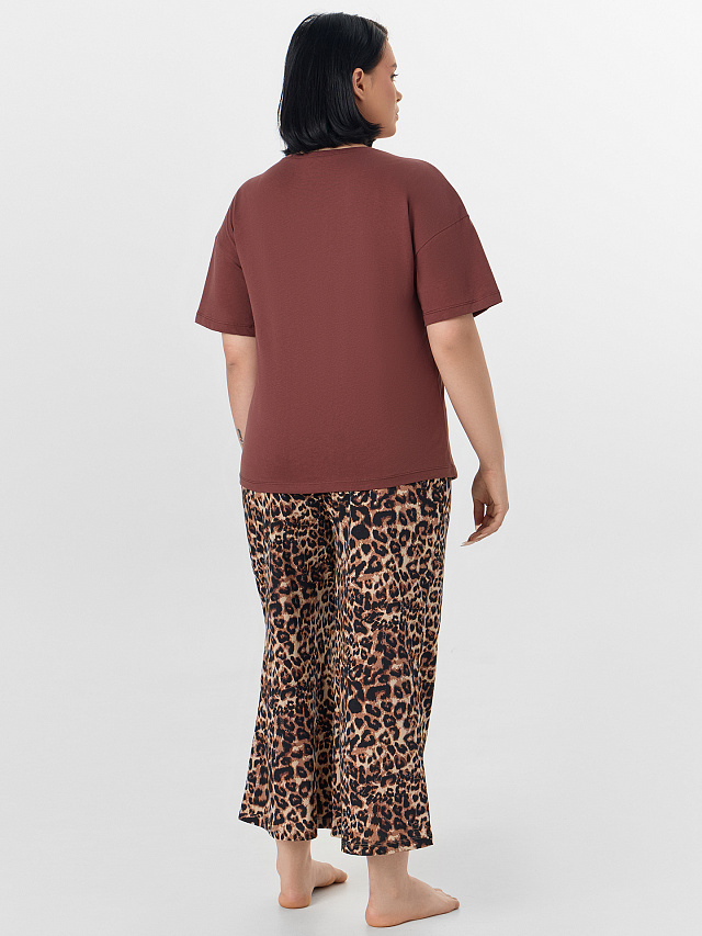 Комплект домашний женский коричневый с леопардовым принтом