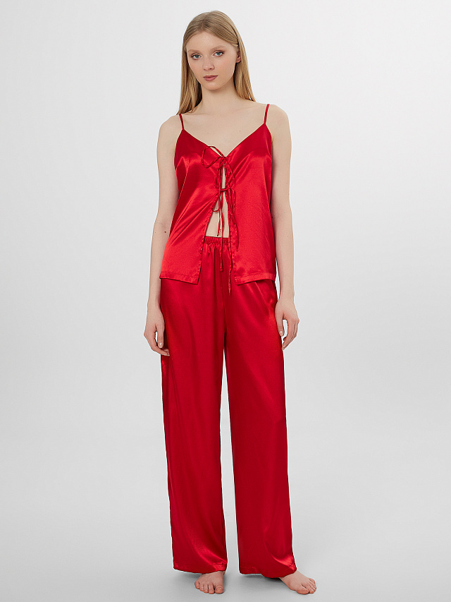Домашний комплект подарит вам ощущение невесомого комфорта и безупречного стиля. Этот элегантный ансамбль состоит из блузы и брюк, создающих гармоничный образ для расслабленного отдыха.