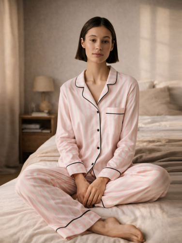 Состав с преобладанием полиэстера и добавлением эластана обеспечивает легкость и упругость ткани. Комплект не мнется, сохраняет форму в течение дня и дарит коже приятную прохладу. Этот набор станет вашим любимым спутником для спокойного сна, утреннего кофе и моментов полной релаксации в стенах дома.