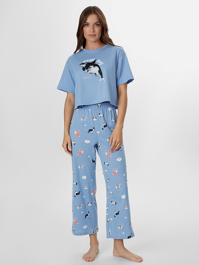 Надпись на русском языке добавляет образу игривости и настроения, напоминая о легкости и отдыхе. Если вы хотите купить женскую пижаму, которая сочетает натуральные материалы, современный дизайн и универсальность, этот комплект станет прекрасным выбором. Пижама женская с бриджами подойдет для сна, утреннего кофе или отдыха дома, даря уверенность и уют в каждой детали.