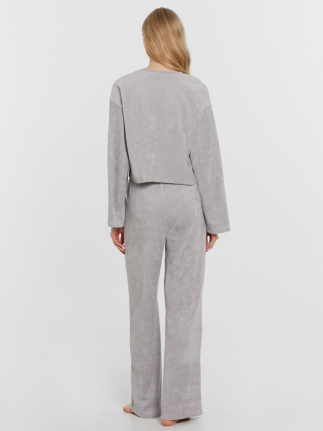 Позвольте себе роскошь комфорта и элегантности с этим стильным махровым комплектом, состоящим из джемпера и брюк свободного силуэта. Джемпер с длинными рукавами и спущенной линией плеча придает особый шарм, а круглая горловина добавляет изысканности. Брюки прямого кроя со свободным силуэтом и эластичной талией гарантируют комфортную посадку, обеспечивая максимальное удобство в течение всего дня. Изделие выполнено из махровой ткани, обладающей высокой износостойкостью, гарантируя долговечность и сохранение внешнего вида даже после многочисленных стирок. Создавайте непринужденные, но утонченные образы с комплектом для женщин от Mark Formelle.