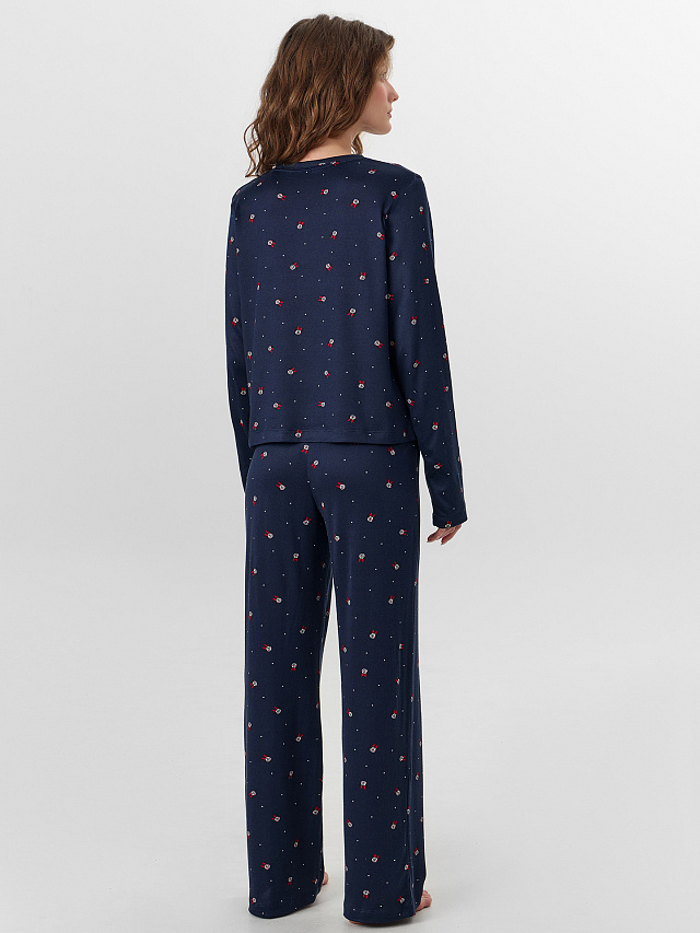 Синий домашний комплект с нежным узором создает атмосферу спокойного уюта. Этот гармоничный набор из лонгслива и брюк станет верным спутником ваших расслабленных вечеров и моментов отдыха.