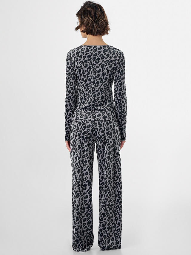Джемпер с круглым вырезом и длинными рукавами мягко облегает фигуру, не стесняя движений. Брюки со средней посадкой на мягком эластичном поясе обеспечивают комфорт и удобную посадку. Два вместительных кармана в боковых швах с мягкой подкладкой внутри добавляют модели практичности.