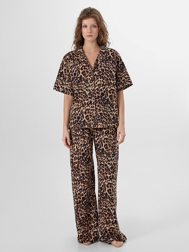 Женская домашняя пижама из рубашки и брюк создана для тех, кто ценит уют и комфорт. Натуральный хлопок обеспечивает нежность и воздухопроницаемость, даря коже приятные ощущения и полную свободу движений. Рубашка свободного кроя с отложным воротником и короткими рукавами выглядит стильно и элегантно. Классическая застежка на пуговицы удобна в использовании, а аккуратная обработка всех краев обеспечивает долговечность носки.