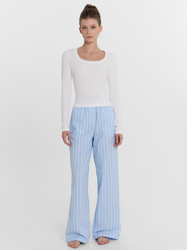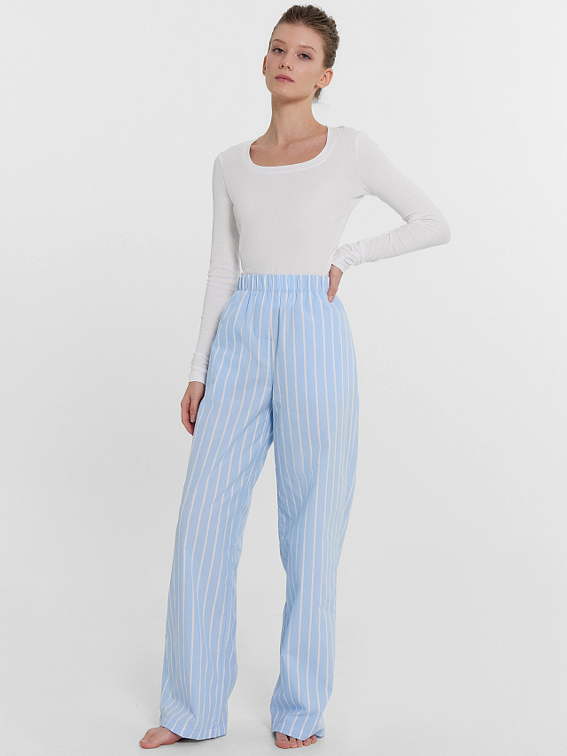 Пижамный комплект женский, состоящий из джемпера и брюк. Модель выполнена из высококачественного хлопка. Джемпер прилегающего силуэта, с длинными рукавами и немного спущенной линией плеча. Горловина формы каре. Брюки полной длины, широкие, с эластичной тесьмой в поясе. Лаконичный дизайн комплекта, выдержанный в спокойных и универсальных оттенках, позволяет создавать стильные и уютные образы для дома. Высокое качество материалов гарантируют долговечность этого пижамного комплекта. Он сохранит первоначальный вид даже после многократных стирок, не теряя формы и не выцветая при правильном уходе. Эта женская хлопковая пижама станет воплощением комфорта и элегантности для девушек, ценящих удобство и стиль в домашней одежде. Широкий размерный ряд. Отличный вариант для сна, отдыха и домашних дел!