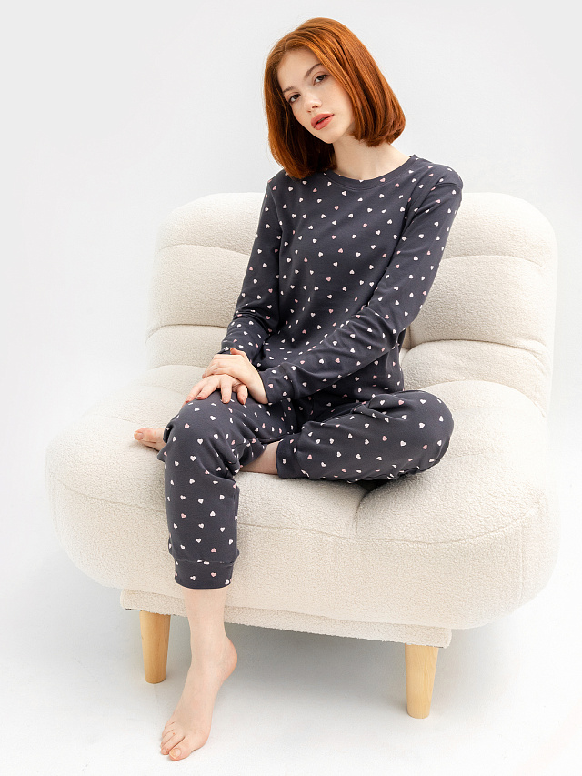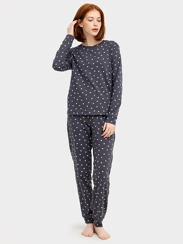 Комплект женский (джемпер, брюки) серый с сердечками