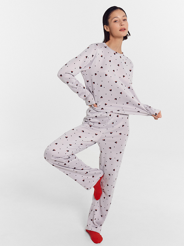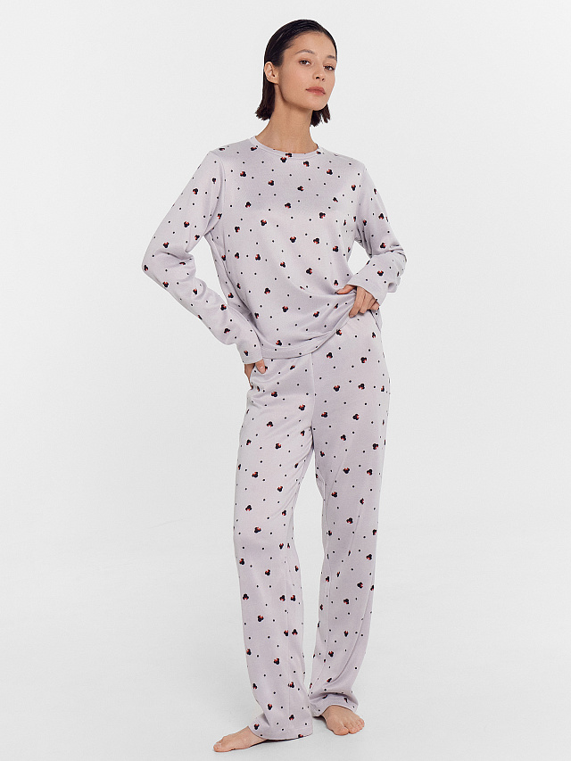 Комплект женский (джемпер, брюки) светло-серый с ушками Минни Маус и горошками