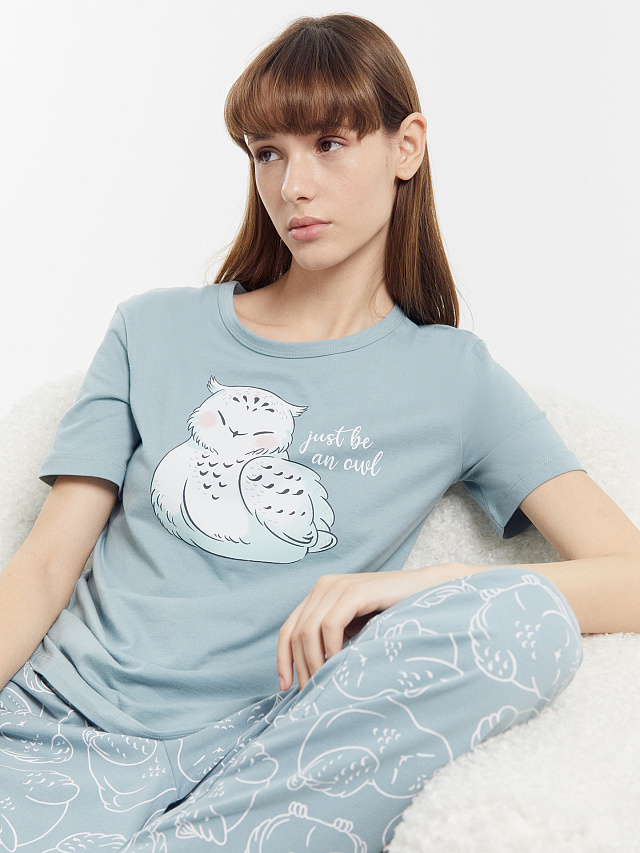 Милая пижама женская из высококачественного хлопка. Футболка свободного силуэта, с круглой горловиной и короткими рукавами. Свободные брюки длиной до косточки с классической линией талии и эластичной тесьмой в поясе. Комфортный комплект женский для сна и домашних дел, в нем уютно и комфортно. Идеальный вариант на каждый день. Широкая размерная сетка, есть модели plus-size, в линейке много базовых и других милых расцветок пижам. Рекомендуем пижаму женскую для сна, отдыха и домашних дел!