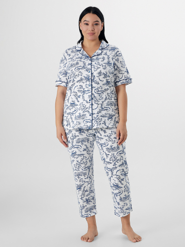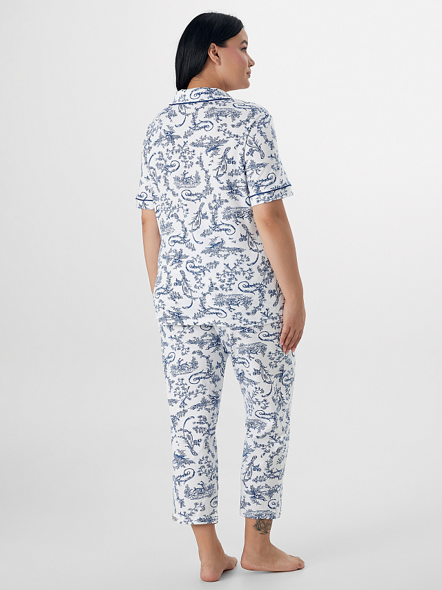 Этот женский домашний комплект — идеальное сочетание комфорта и элегантного дизайна! Рубашка прямого силуэта с отложным воротником, дополненным аккуратным кантом по краю воротника, который добавляет изысканный акцент. Накладной карман на груди делает модель функциональной, а короткие рукава обеспечивают удобную посадку. Центральная застежка с петлями и пуговицами позволяет легко регулировать посадку, а низ рубашки застрочен в подгибку для аккуратного финишного вида. Бриджи свободного силуэта с эластичной талией создают комфортную посадку, мягко адаптируясь к фигуре. Нижние края обработаны швом вподгибку, что гарантирует долговечность и эстетичность изделия. Комплект выполнен из хлопковой кулирки — мягкого, воздухопроницаемого материала, который приятно прилегает к коже и обеспечивает комфорт на весь день. Отличный вариант для отдыха дома, легких вечерних прогулок или уютных моментов! Этот комплект сочетает в себе стиль, удобство и качественные материалы, создавая безупречный образ для повседневного комфорта.