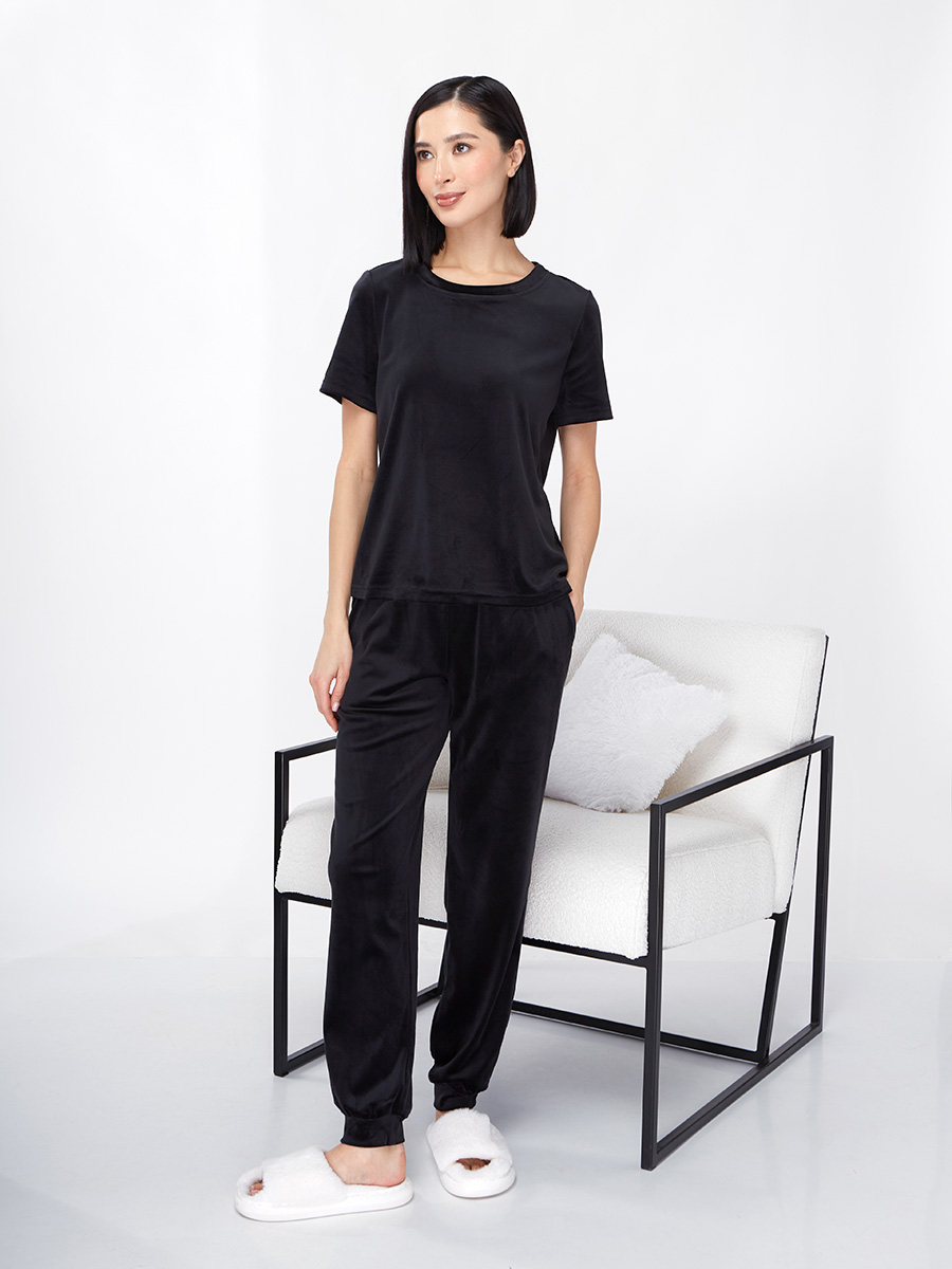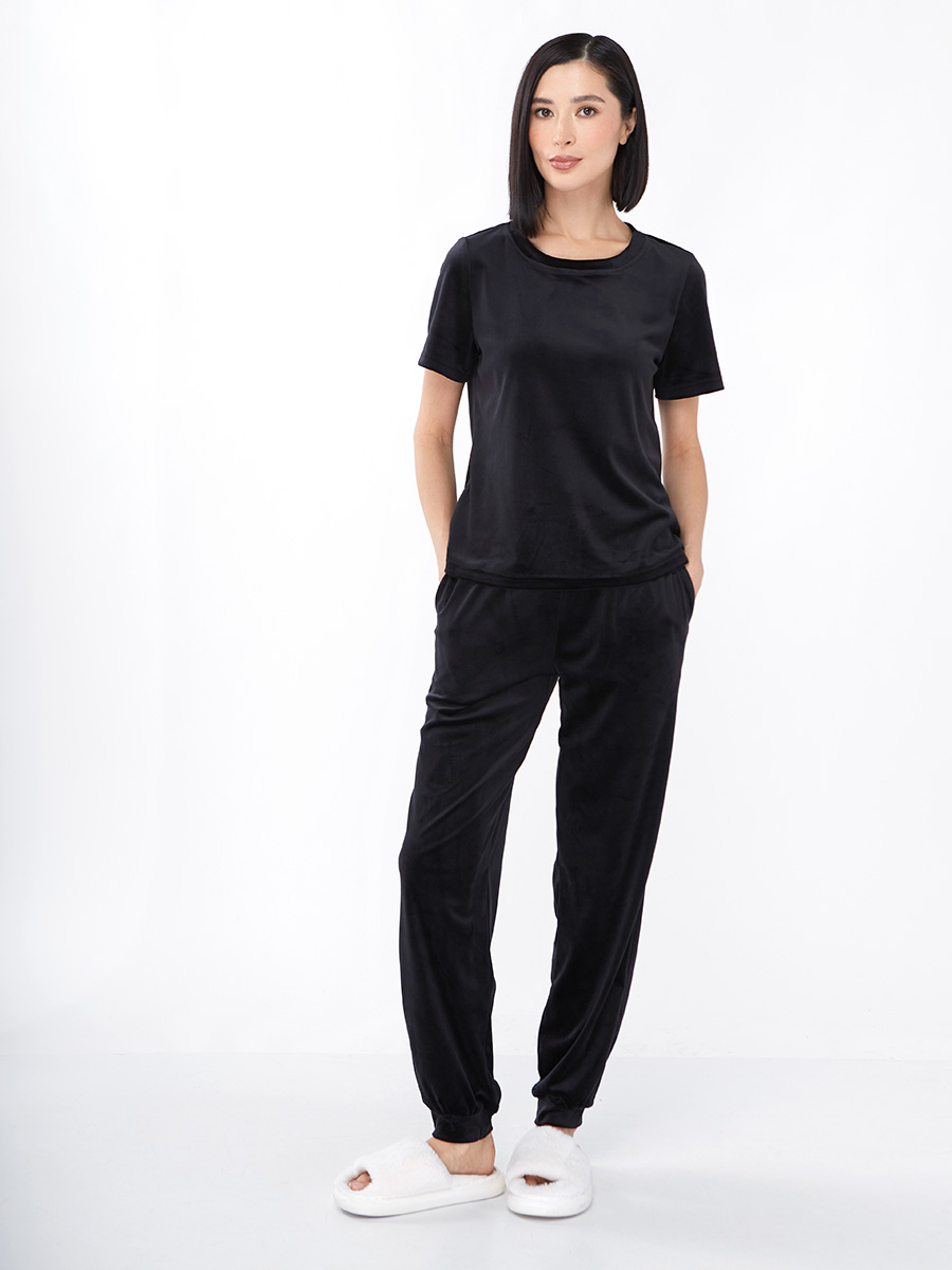 Костюм из велюра c коротким рукавом OD-889-1 черный OD-889-1