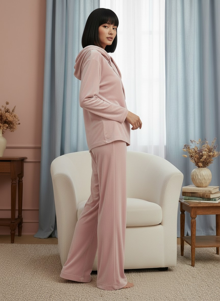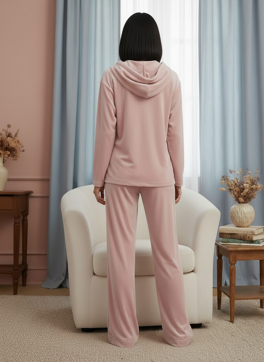 Костюм из велюра со съемным капюшоном и резинкой в комплекте OD-1009-1 розовый OD-1009-1
