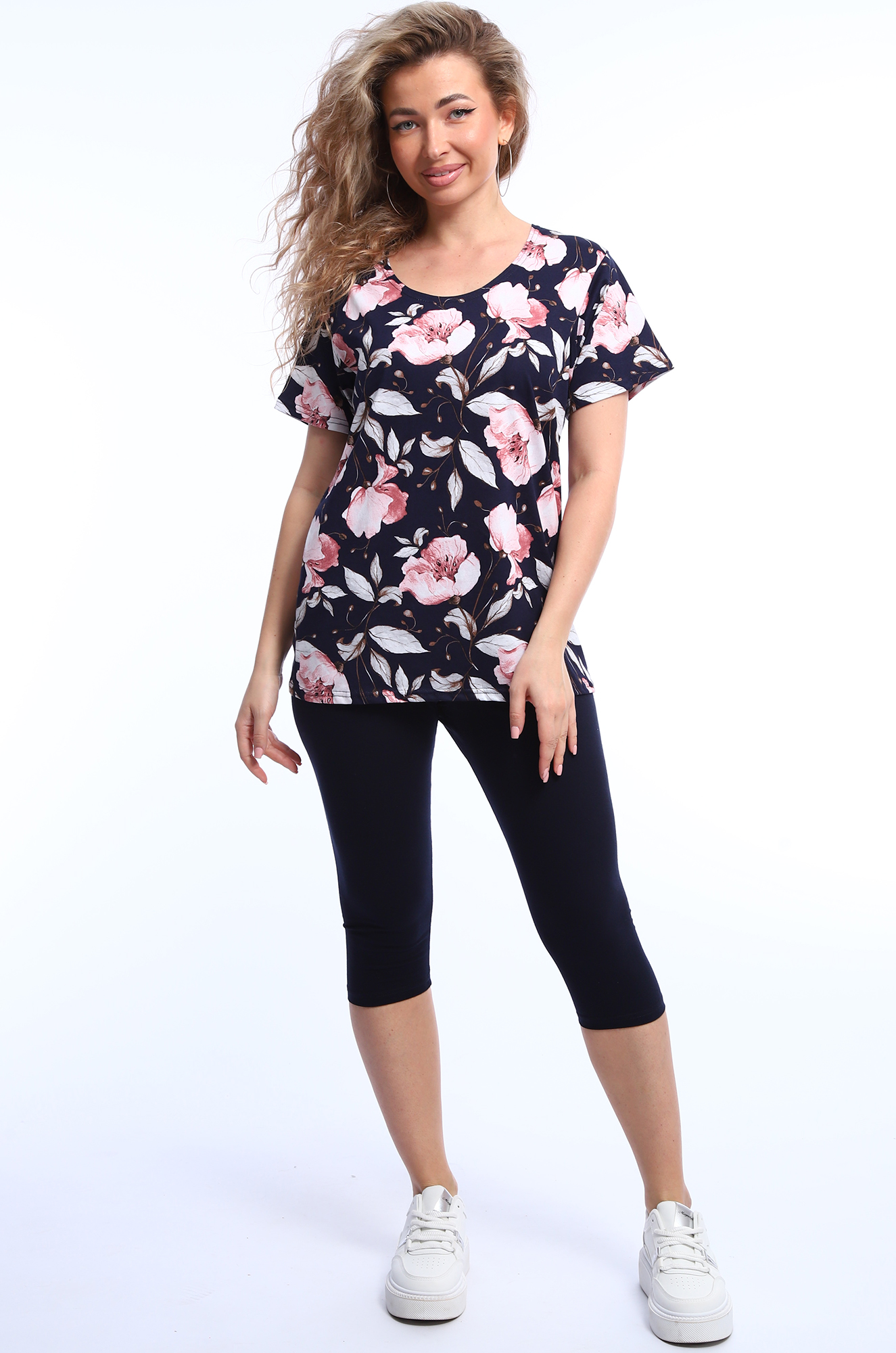 Удобный и невероятно женственный костюм для повседневного домашнего образа. Футболка прямого кроя комфортной длины, рукав втачной. Бриджи облегающие, с высокой посадкой, длина ниже колена, пояс на резинке. Прекрасный вариант для дома, дачи на отдых или для прогулки.