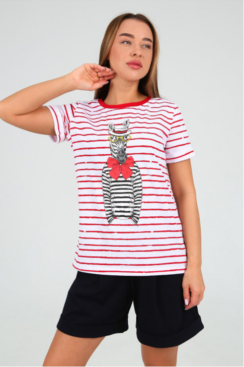 Пижама - домашний костюм из 100% хлопка. Яркая футболка с принтом "Зебра" и шорты на поясе-резинке, два внутренних кармана.
