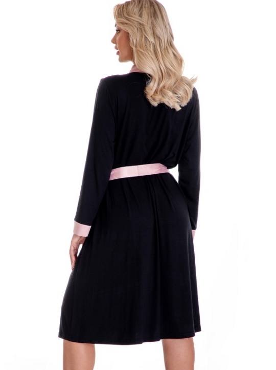 Черный S/M, L/XL, XXL/XXXL Халат-кимоно Dream черный с цветочным принтом с рукавом 3/4, окантовка полочек, пояс и низ рукавов из атласной чёрной ткани. полиэстер 95%, эластан 5%