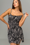 Ночная сорочка с леопардовым принтом выполнена из натурального 100% хлопка. Эффектный вырез на ажурной спинке и небольшой разрез на бедре добавят образу нотку кокетства. Нежное кружево и атласные бантики подчеркнут вашу изящность и очарование.