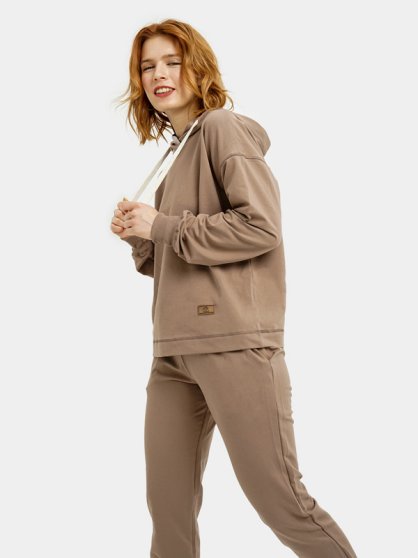 Оптовая продажа. Комплект: Худи и брюки. Худи свободного кроя с капюшоном и длинным рукавом на манжетах. Брюки облегающие с карманами.