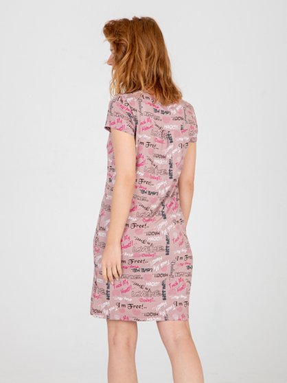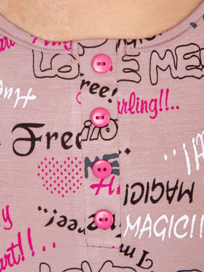 Оптовая продажа. Женское домашнее платье из трикотажного полотна (хлопок 100%), укороченное, прямое, свободного кроя, с короткими втачными рукавами, U-образным вырезом горловины, декоративными пуговками.